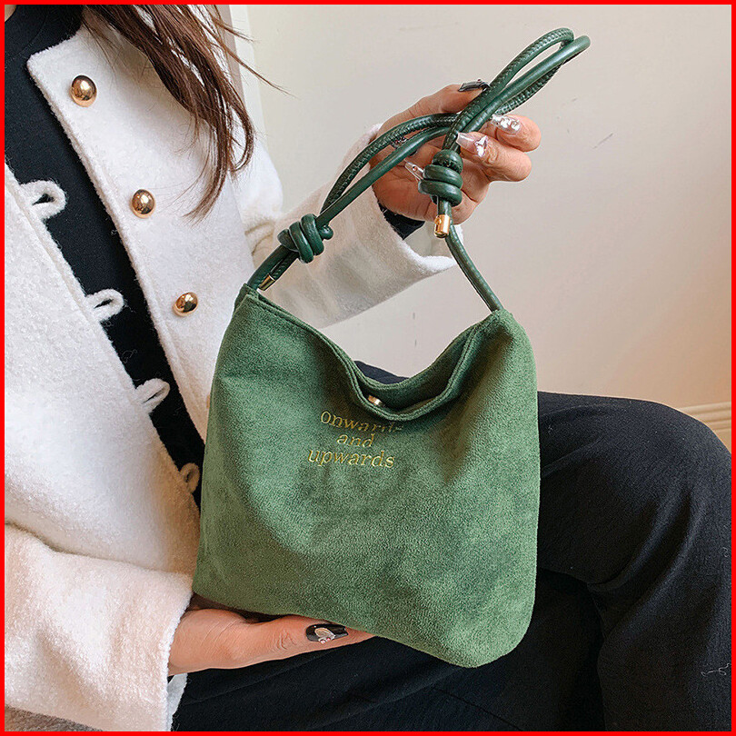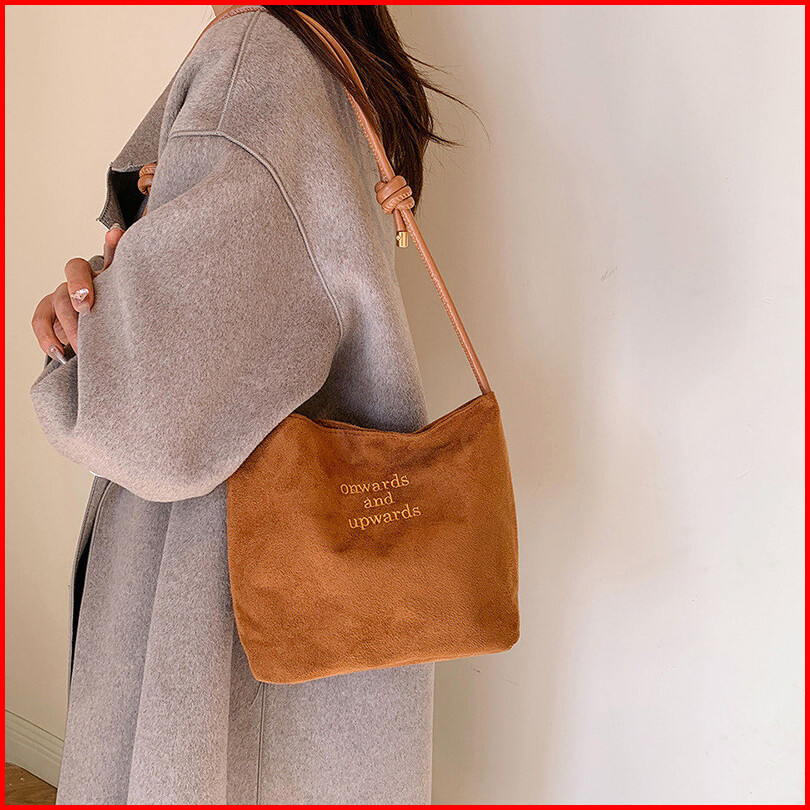 Desain Ceruk Korea Fashion Komuter Tas Tekstur Suede Bahu Bucket Bag Kasual Tote Bag Wanita