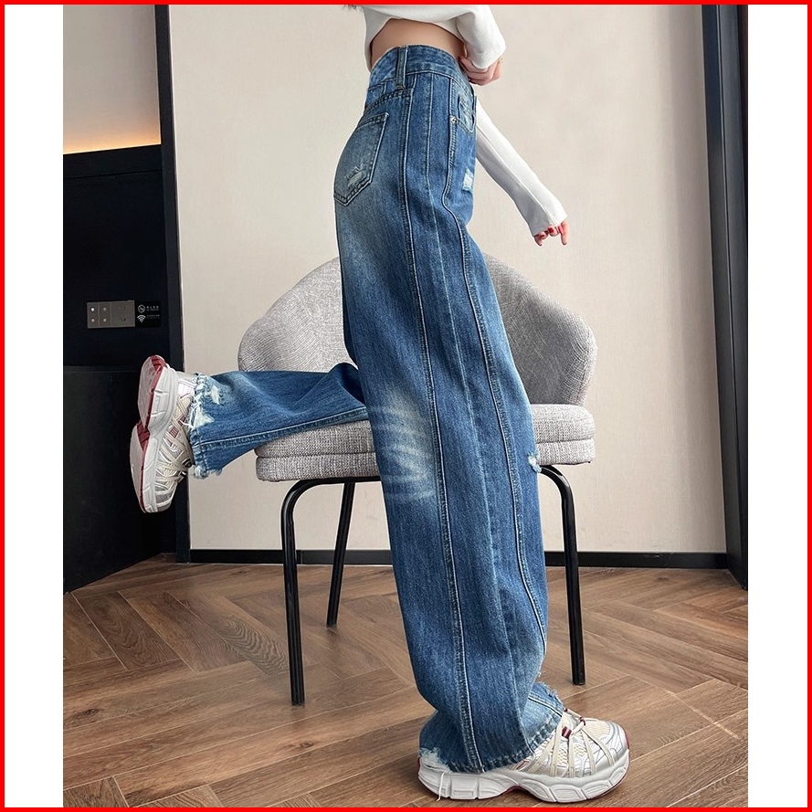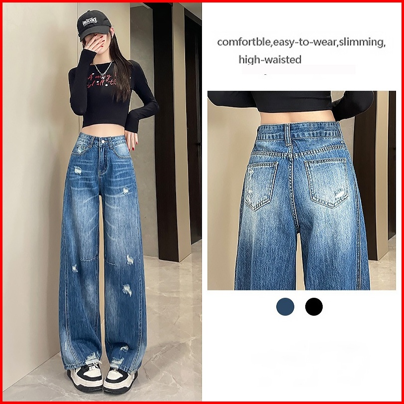 Keygirl Jeans Wanita High Waist Ripped Trendy