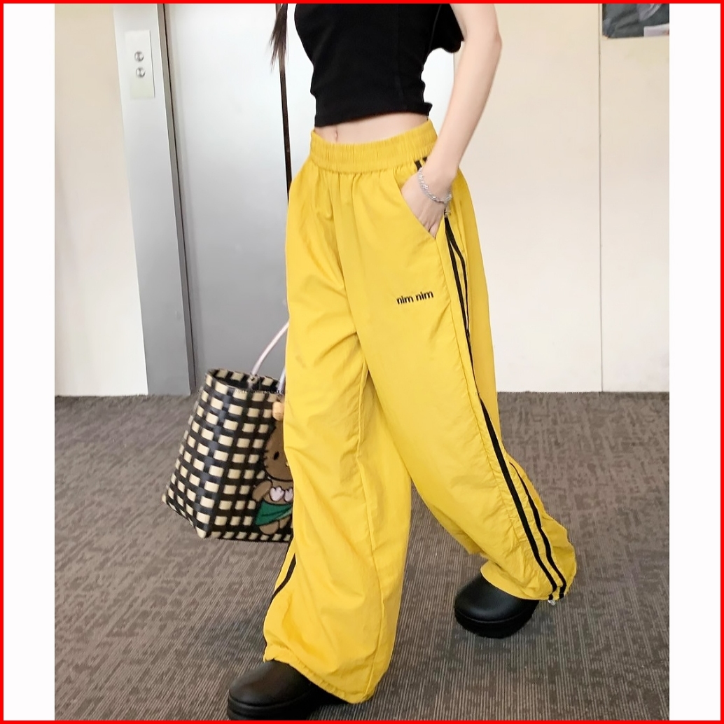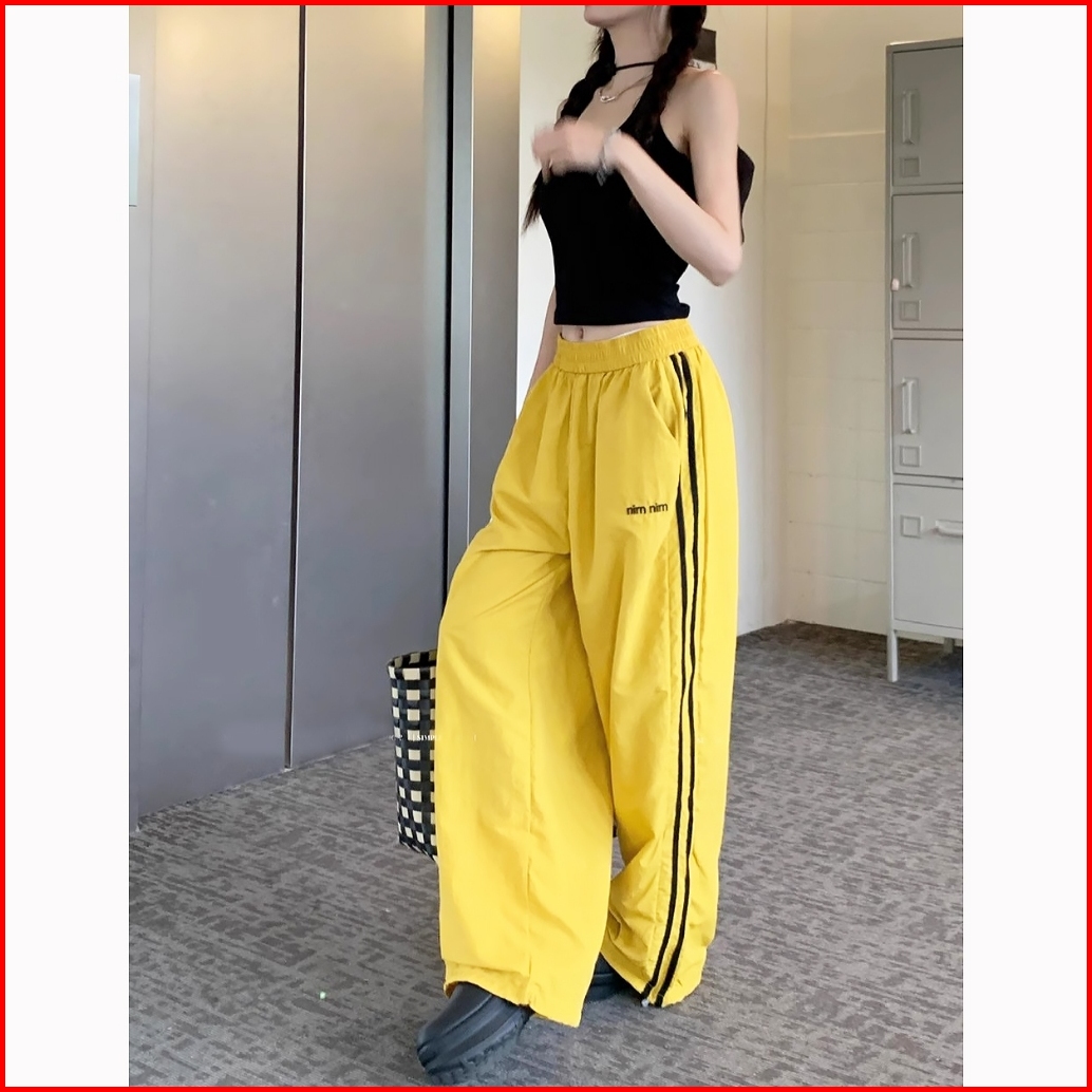 Keygirl Celana Baggy Panjang Wanita Strip Highwaist Celana Panjang Streetwear Style Pants Dance Pants