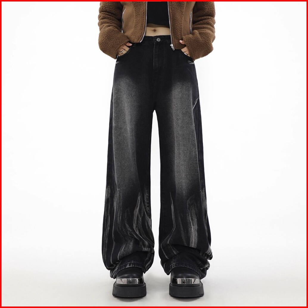 Keygirl Highwaist Wide Leg Jeans Gombrong Celana Jeans Korea Hitam Baggy Jeans Terbaru