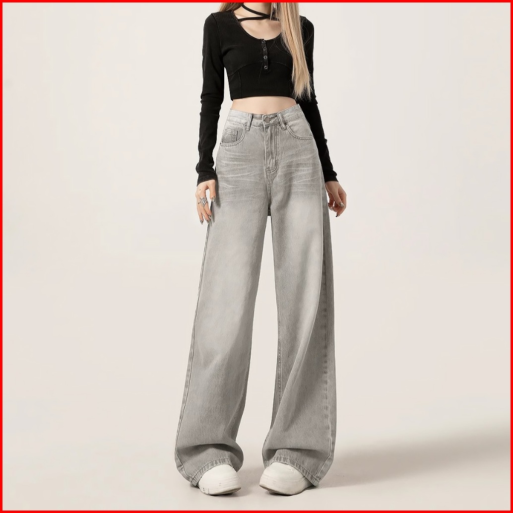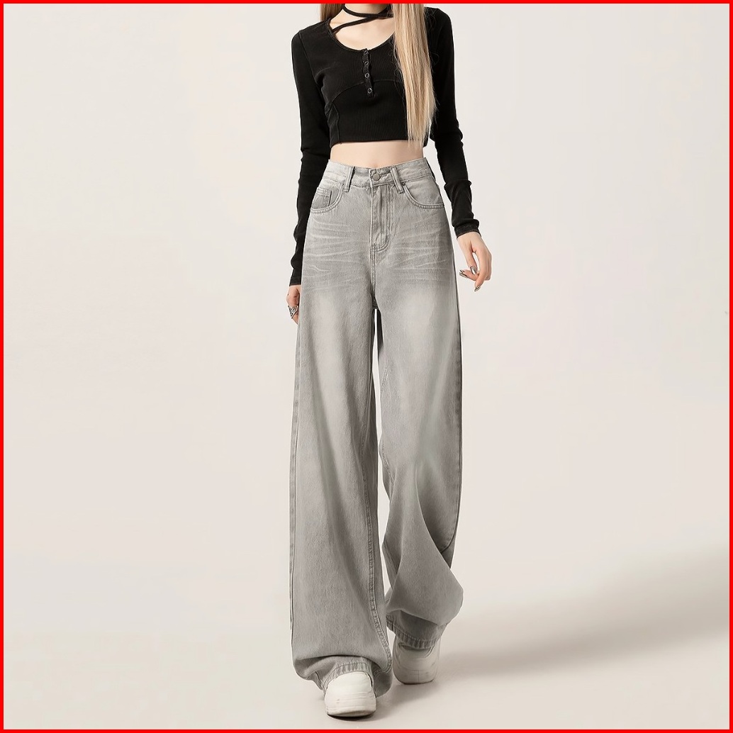 Abu-abu Kulot Highwaist Celana Panjang Wanita Baggy Wide Jeans Wanita