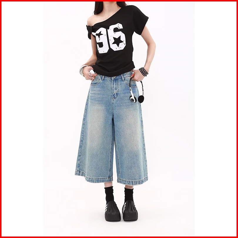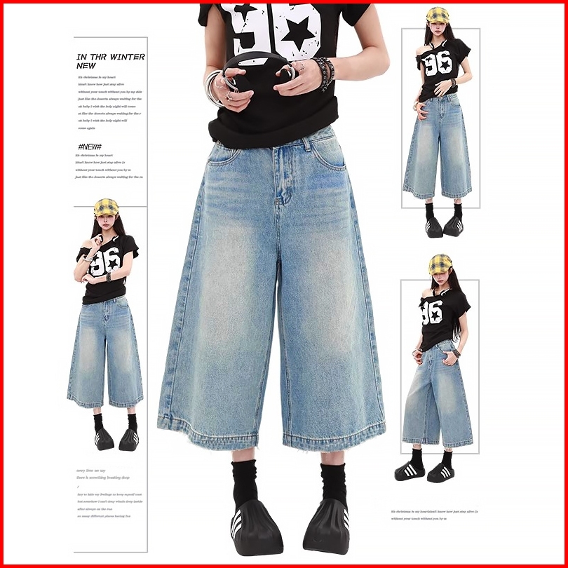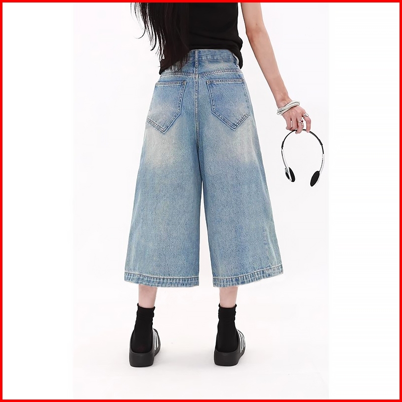 Ready Baggy Short Jeans Wanita Loose 3 4 Berpinggang Tinggi Celana Panjang Longgar Berkaki Tujuh Seperempat