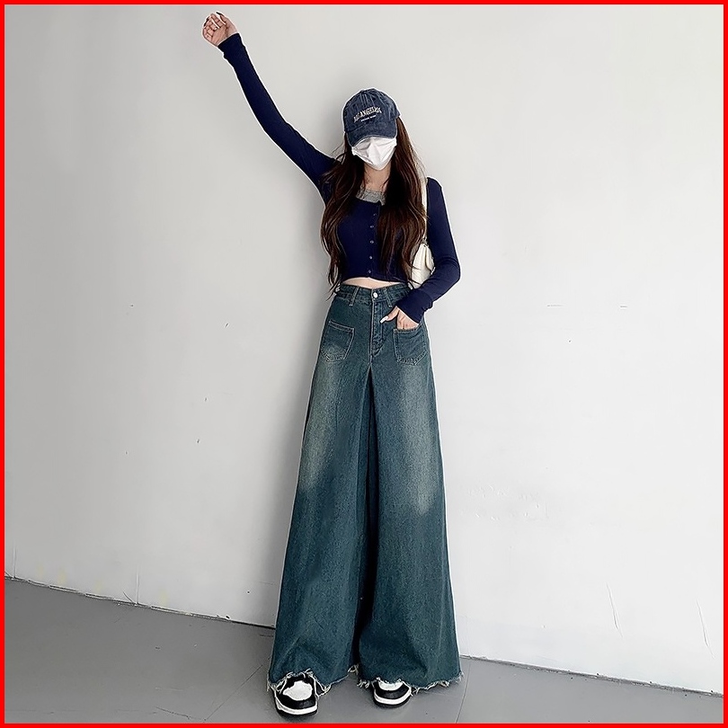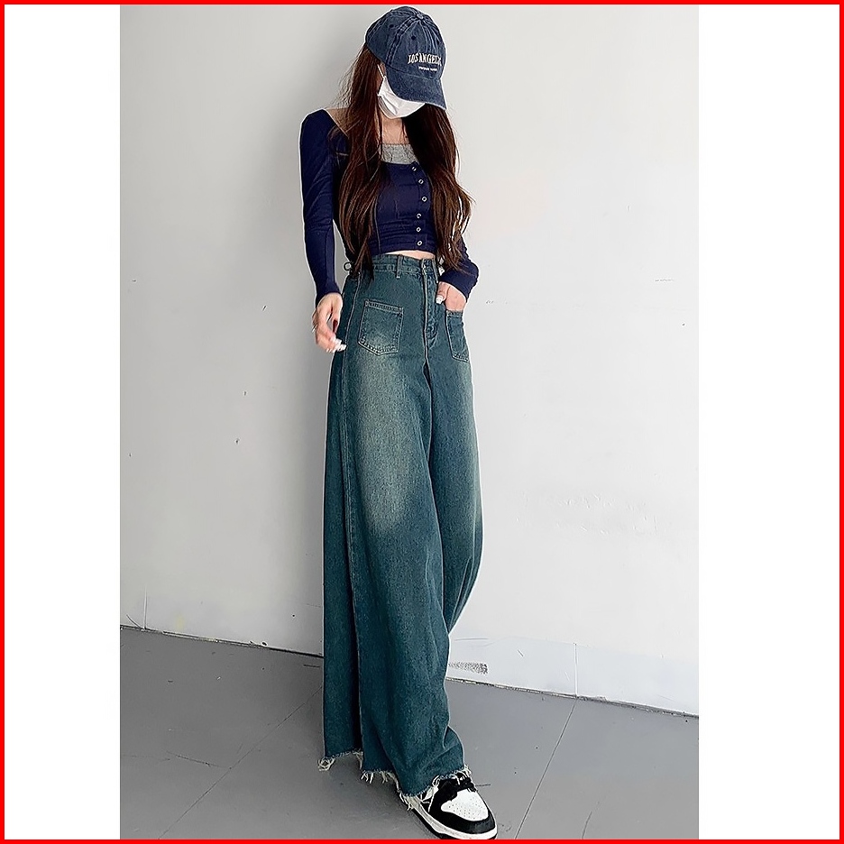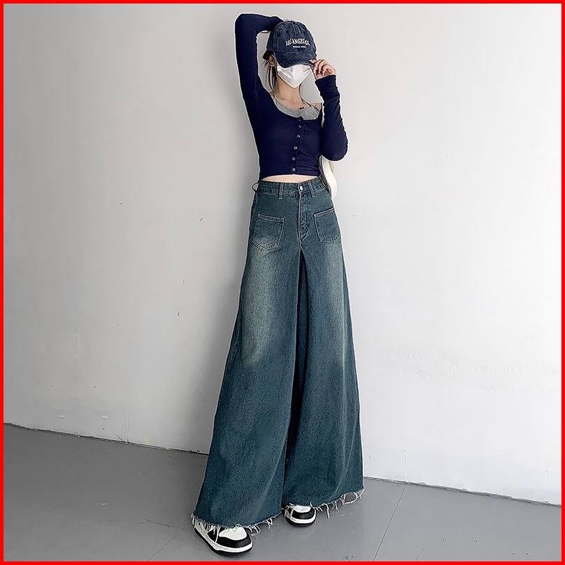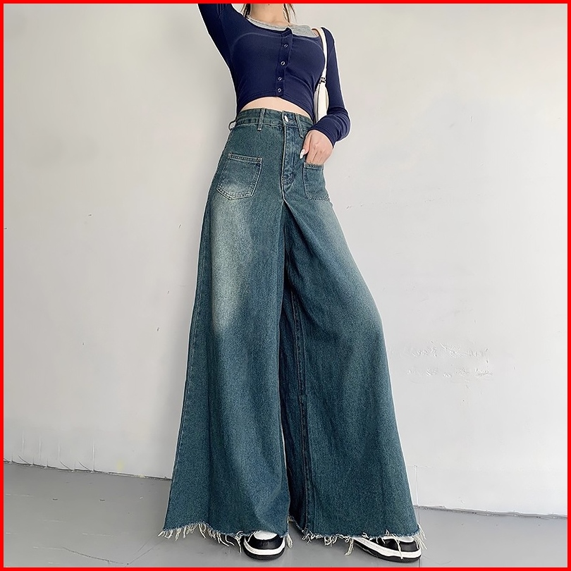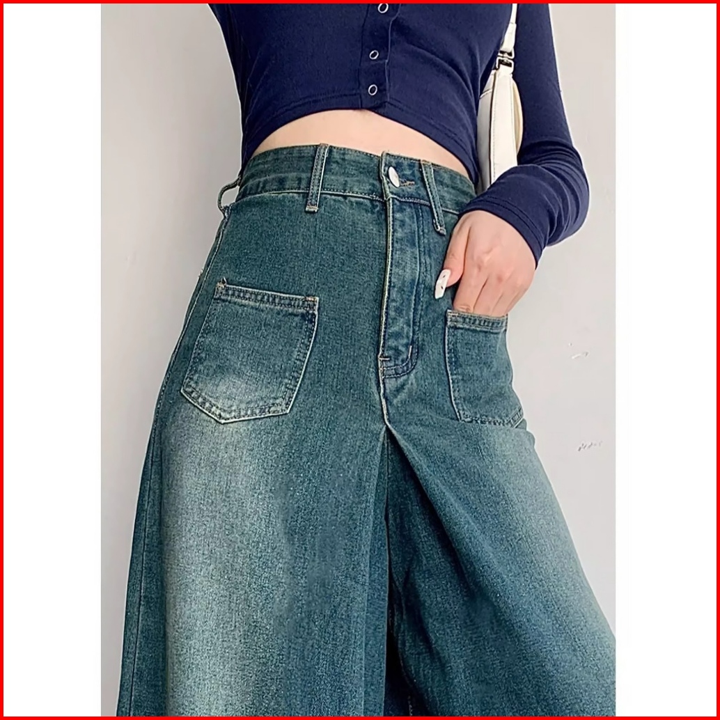 S-5xl Celana Denim Wanitakaki Lebar Jeans Denim Celana Panjang Santai High-rise Kain Denim Premium