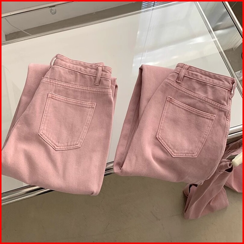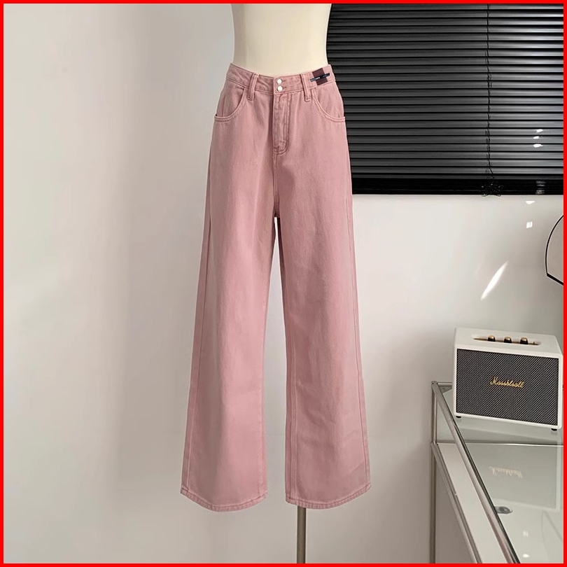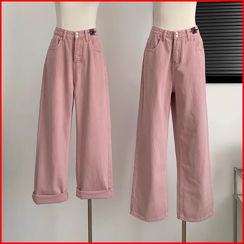 Keygirl 2025 New Celana Jeans Pink Wanita Celana Kulot Loose Pants Premium Highwaist Kasual Denim Korean Style Jumbo Siz