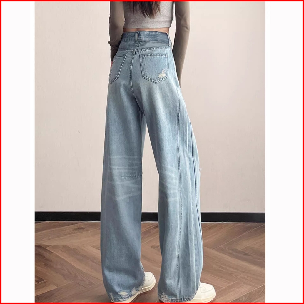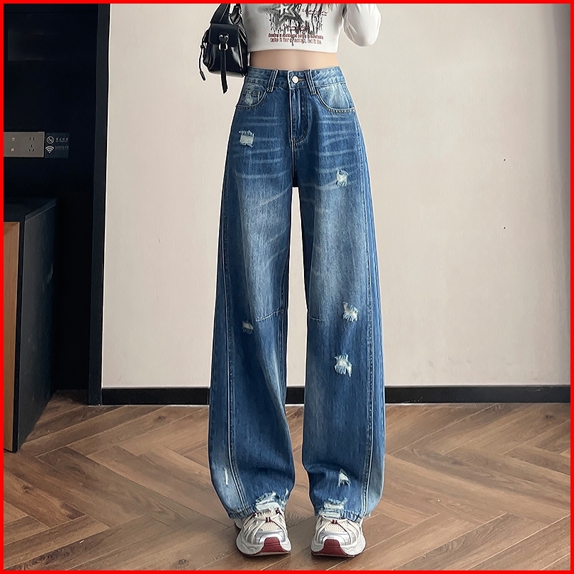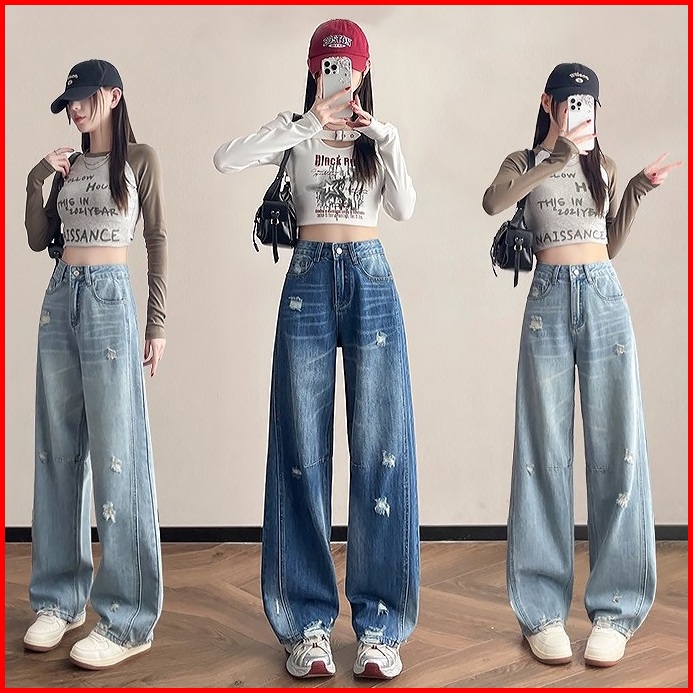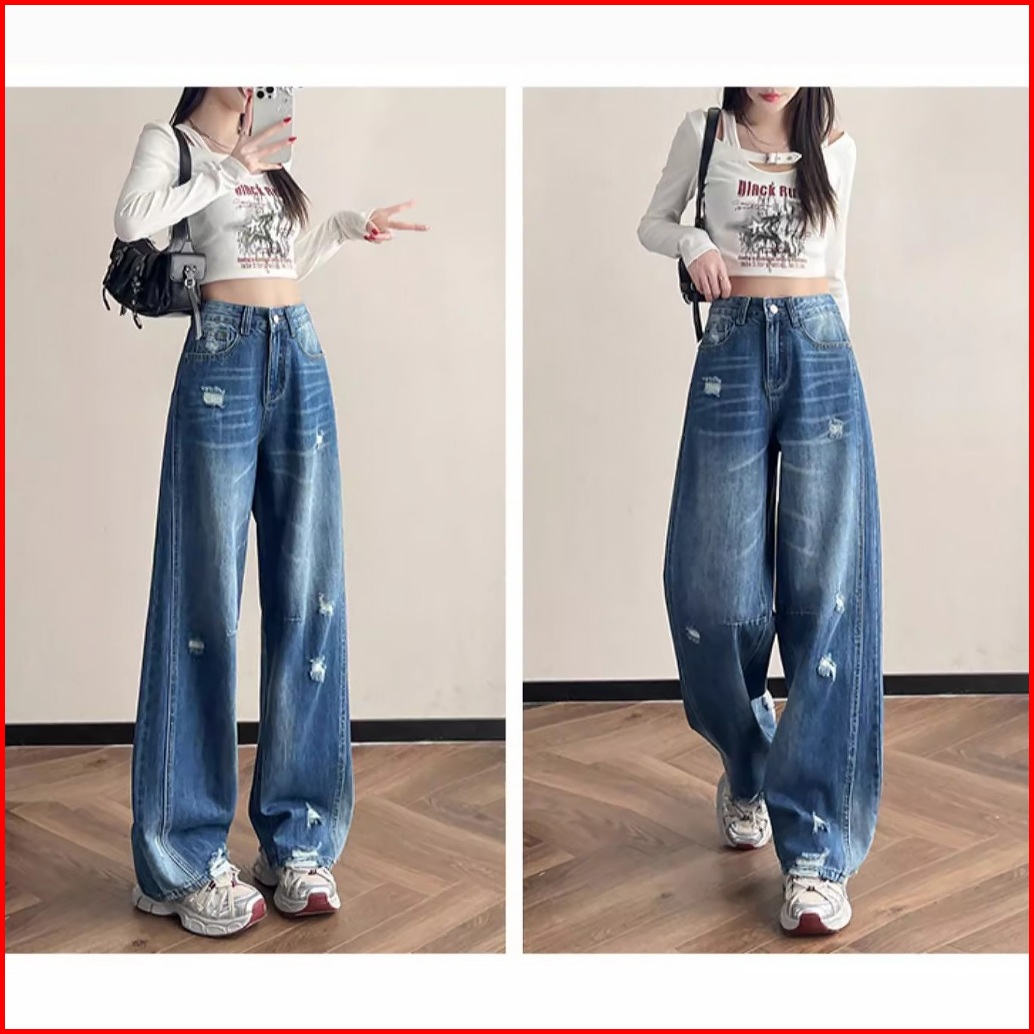 Keygirl Highwaist Baggy Ripped Jeans Premium Jeans Wanita Celana Panjang Jeans Sobek Jumbo Size
