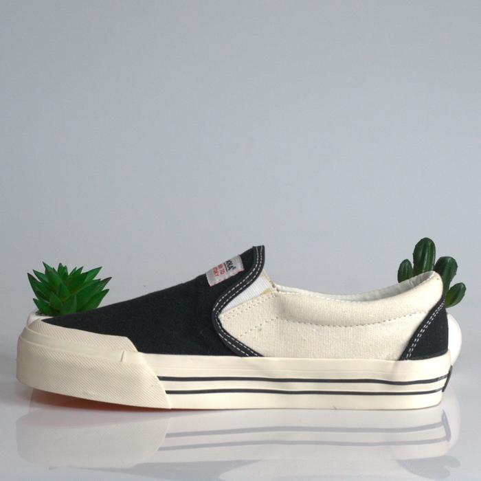 SEPATU SNEAKERS AKNA SLIP ON TEKTONA WHITE BLACK PRIA WANITA KERJA SHOES FLAT - 37