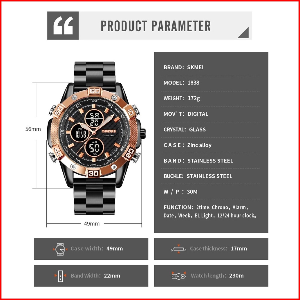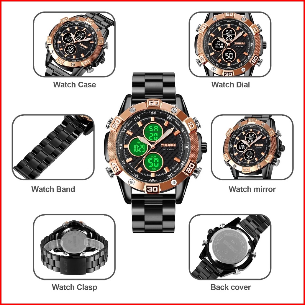 Skmei 1838 Original Jam Tangan Pria Dual Time Stainless Steel Jam Tangan Tahan Air