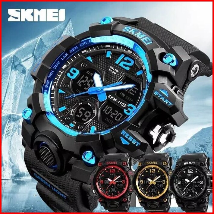 Skmei 1155 Original Jam Tangan Pria Dual Time Rubber Karet Tahan Air