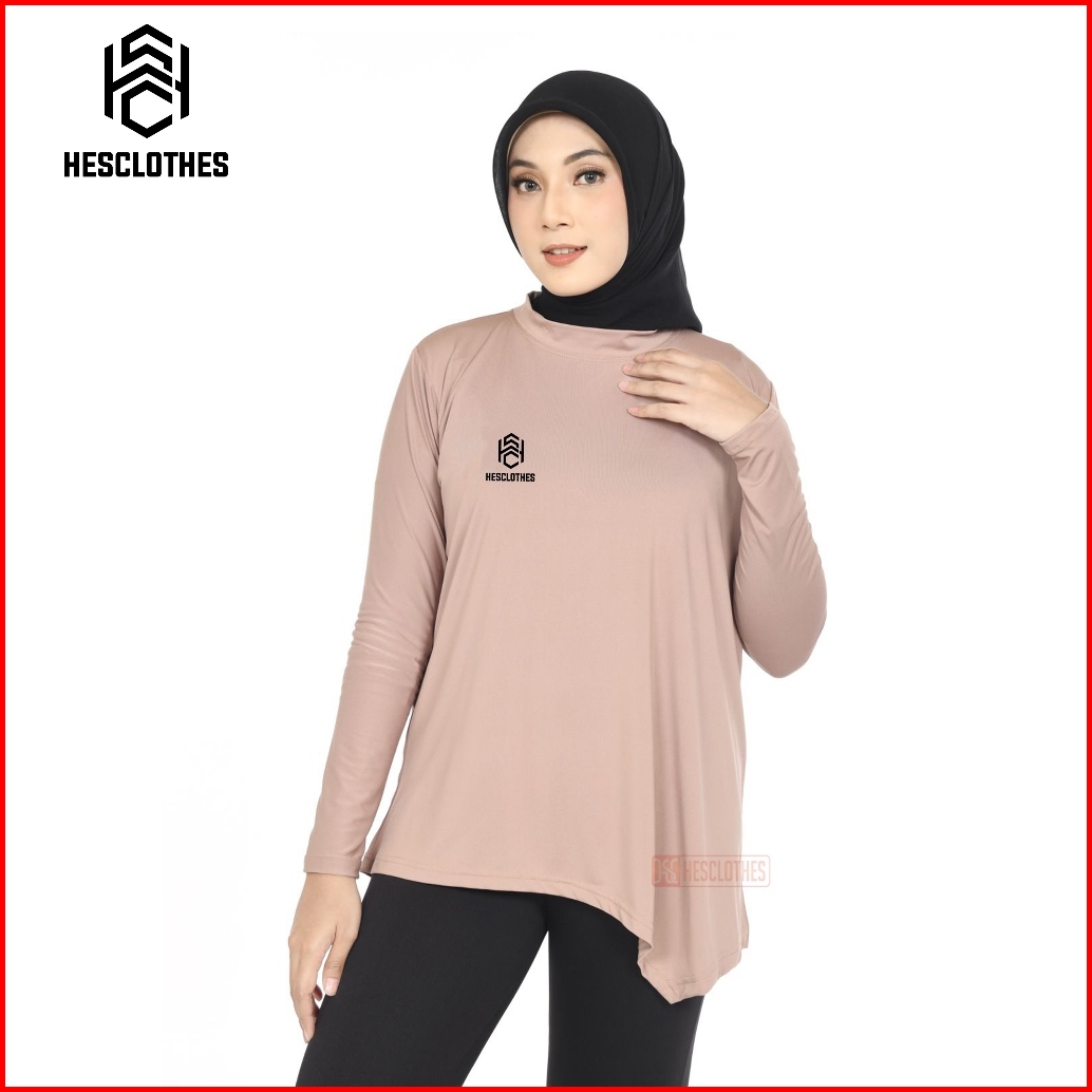 Hsc - Atasan Baju Olahraga Wanita Lengan Panjang Kaos Dryfit Muslimah Lari Gym Bulutangkis Bersepeda