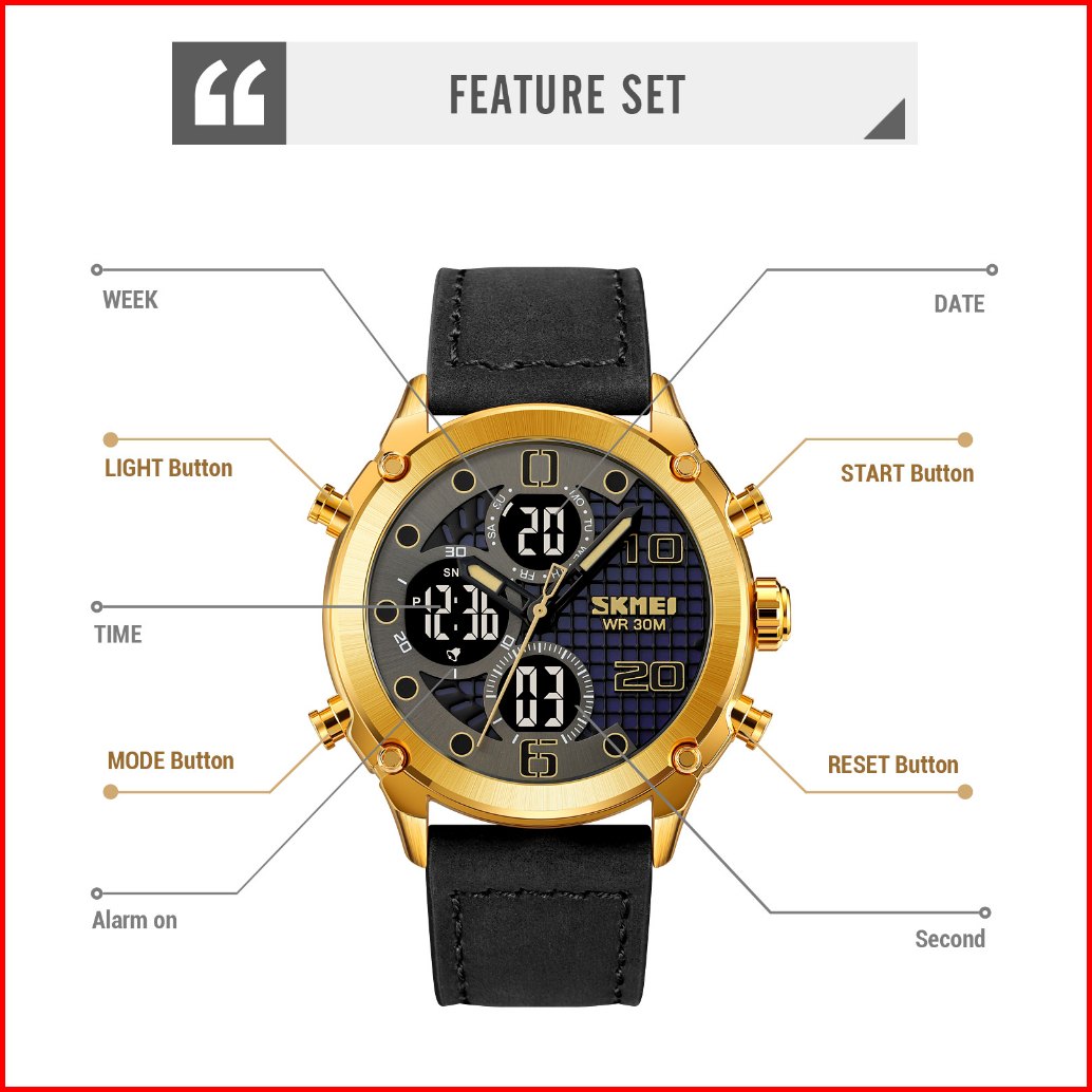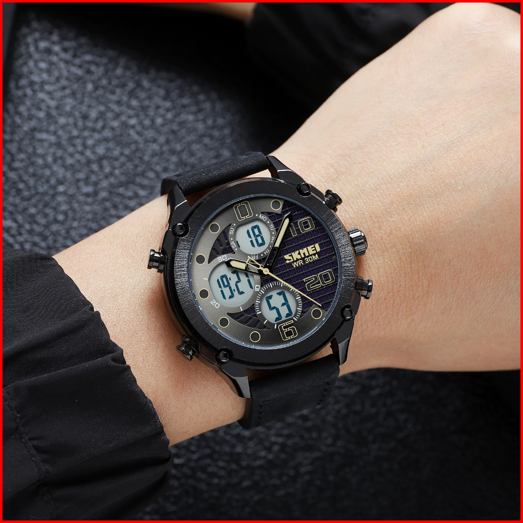 Skmei 1975 Original Jam Tangan Dual Time Leather Kulit Jam Tangan Tahan Air