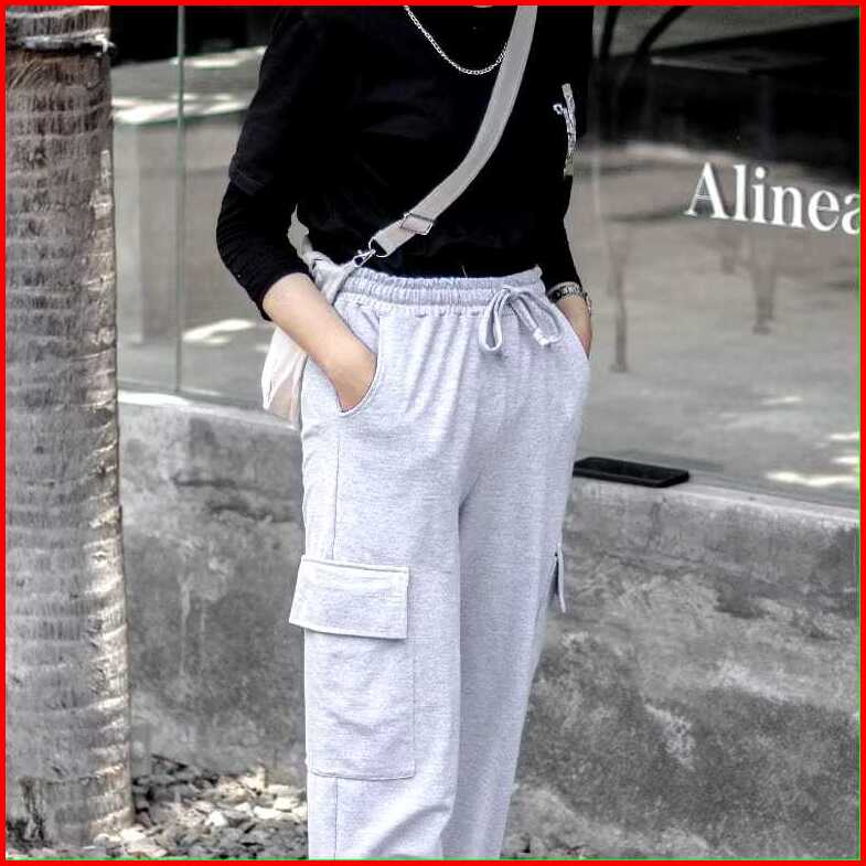 Celana Jogger Highwaistpants Celana Cargo Panjang Wanita Bahan Babyterry Size M-xxl Abu Abu Hitam