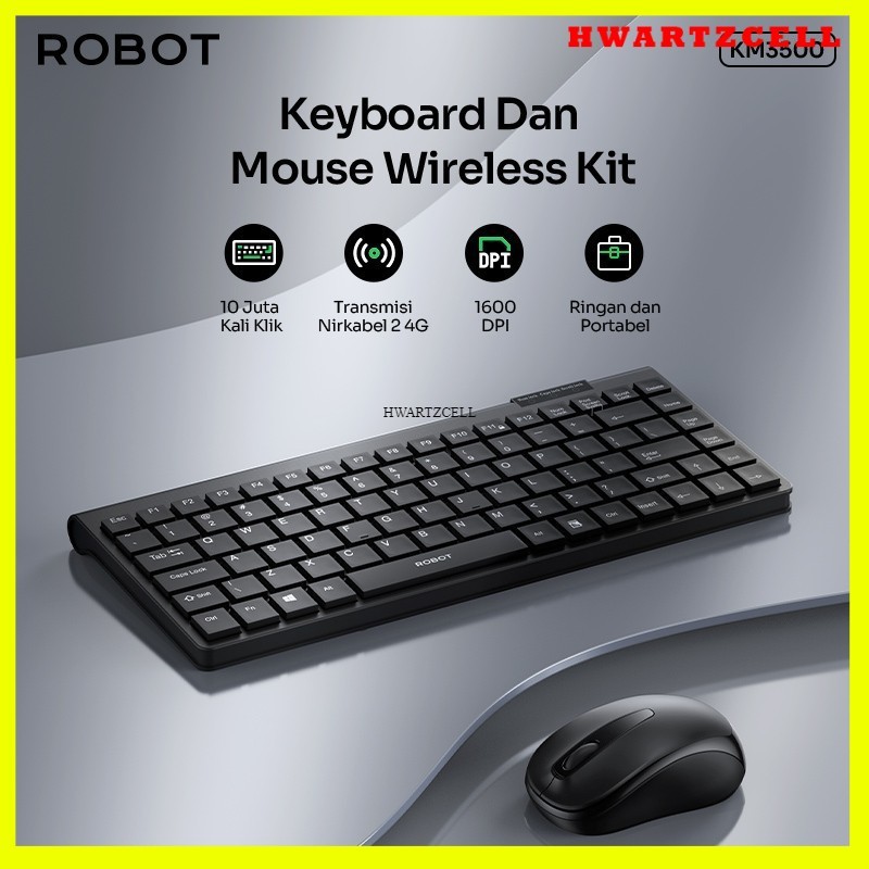 [HWARTZ] ROBOT KM3500 portable mini wireless set combo keyboard and mouse
