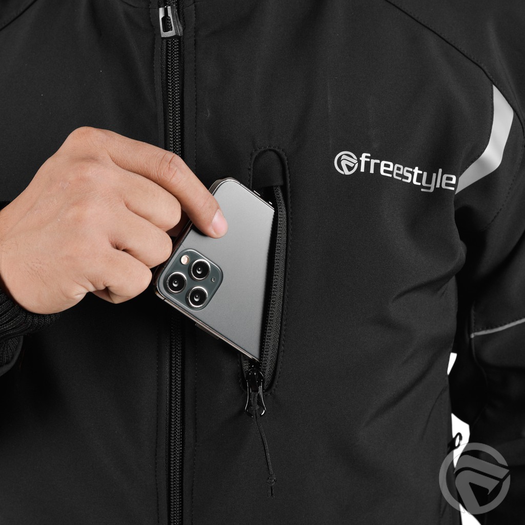 Freestyle Jaket Pria Warna Hitam Anti Air Bahan Bonding Micro Waterproof Jaket Motor Harian Pria