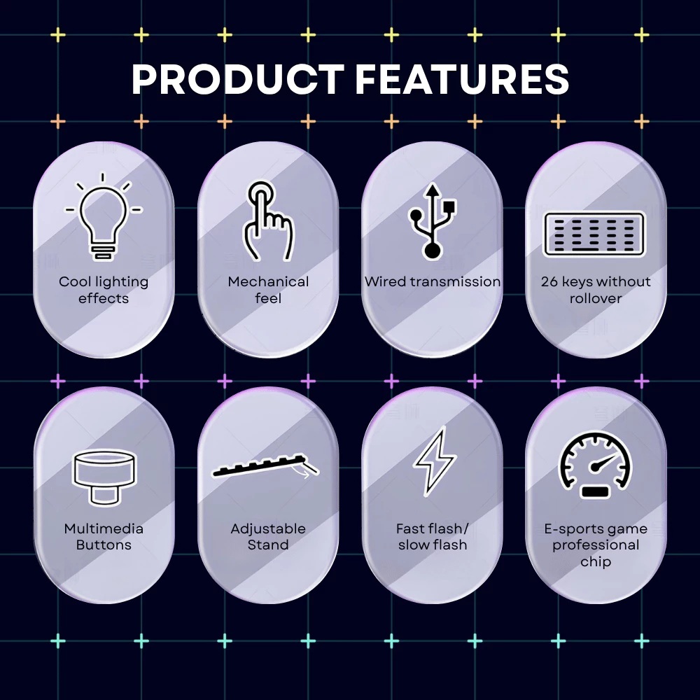 Bluesea H300 Wired Keyboard Multi-color keyboard flash Mouse Gaming Office Set Silent Click