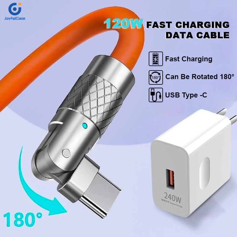 Super Fast Charging Black Data Cable 240W Head Rotatable 120W Super Fast Charging Type C Micro USB iOS Port Android Ligh