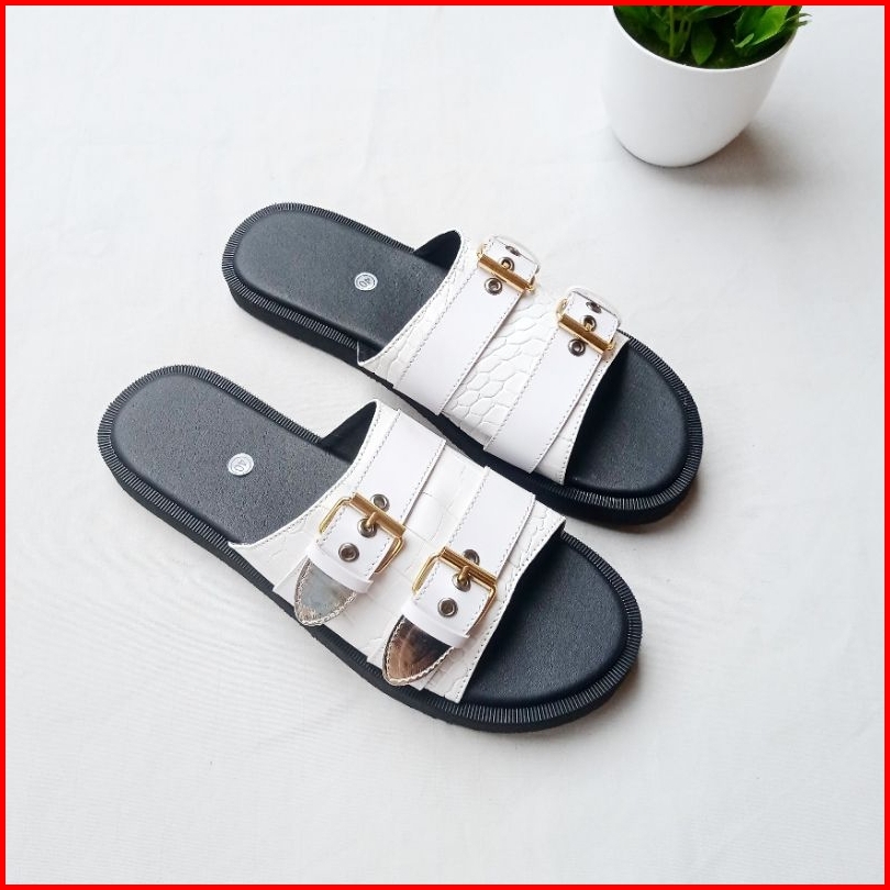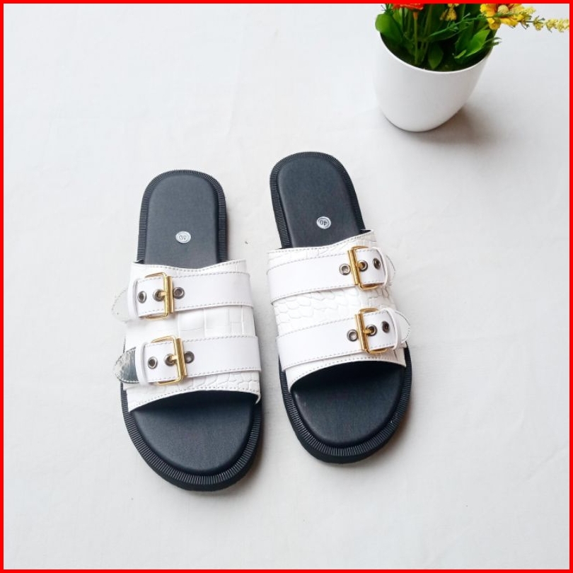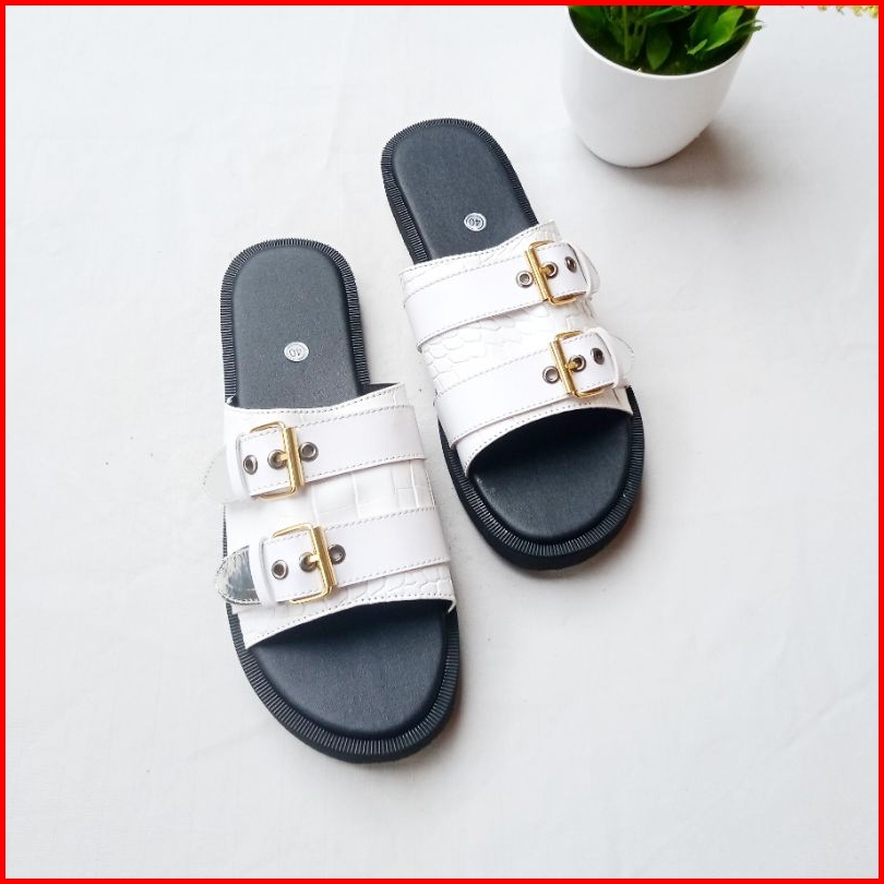 Sb - Sandal Spon Vindy Croco Putih Sol Tebal Wanita