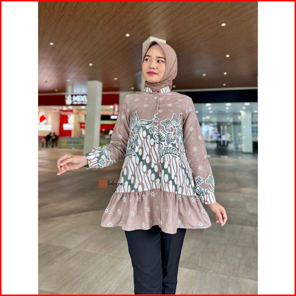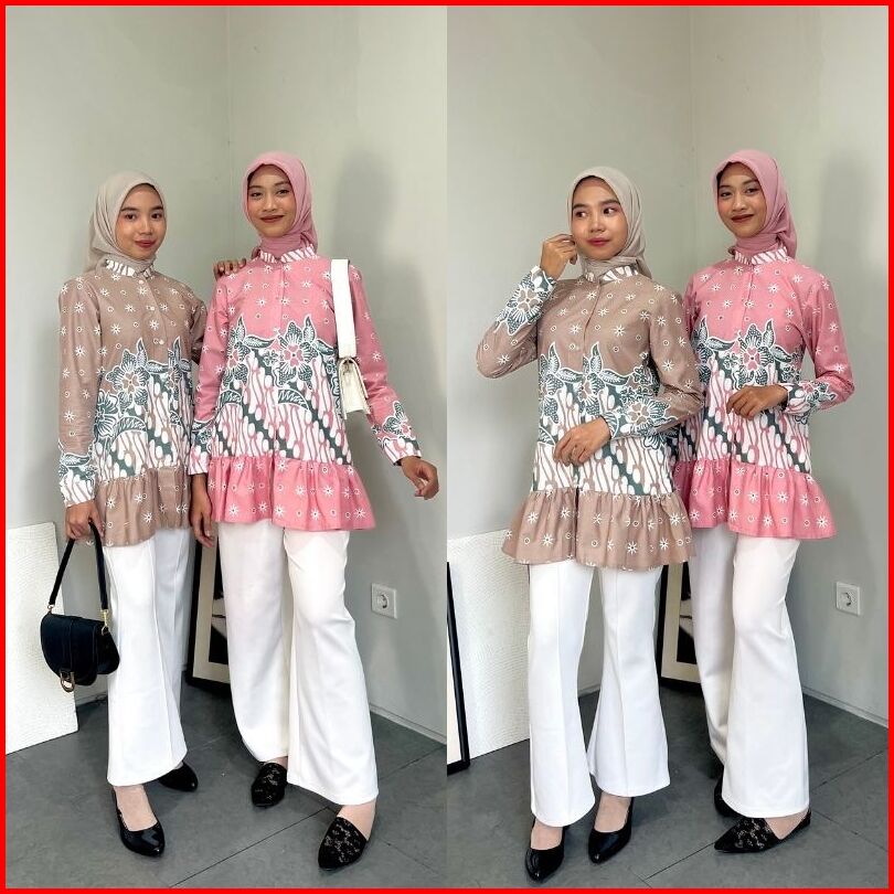 Rasaraya Batik Hastina Blouse Wanita Katun - Atasan Batik Kerja Kantor Warna Dusty Pink Dan Coksu
