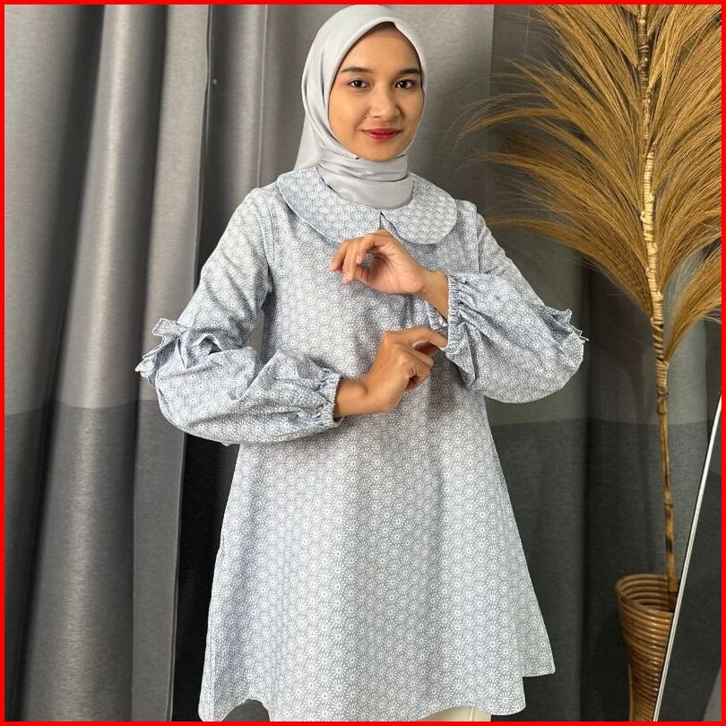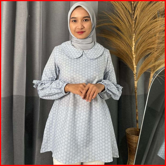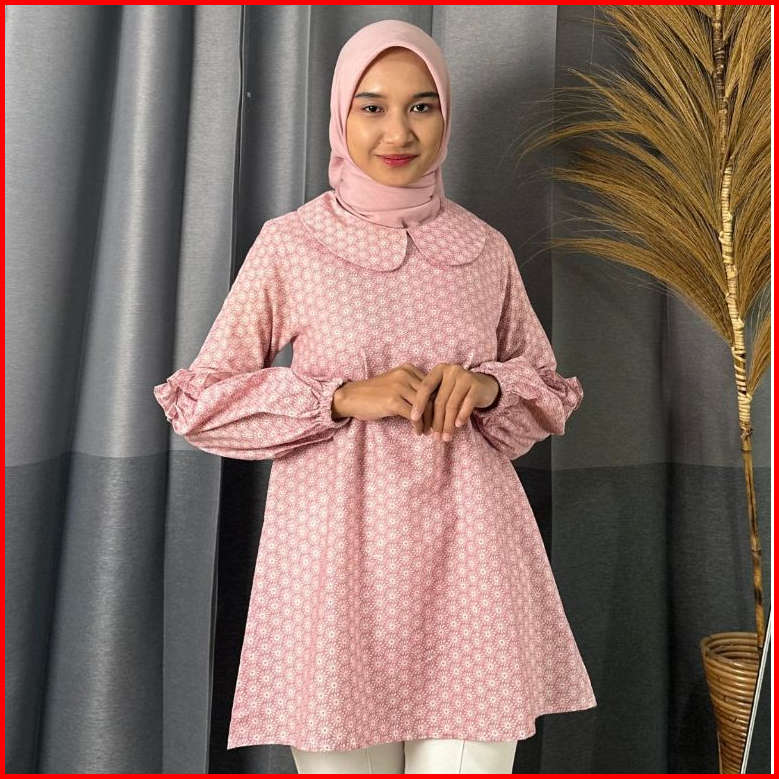 Rasaraya Batik Nadya Blouse Wanita Katun - Atasan Batik Pink Biru Pastel Simple Dan Elegan
