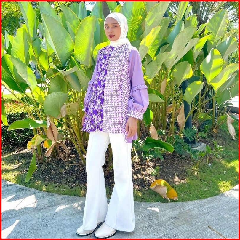 Rasaraya Batik Zarina Blouse Wanita Katun - Atasan Batik Cap Lilac Busui Friendly Modern Elegan