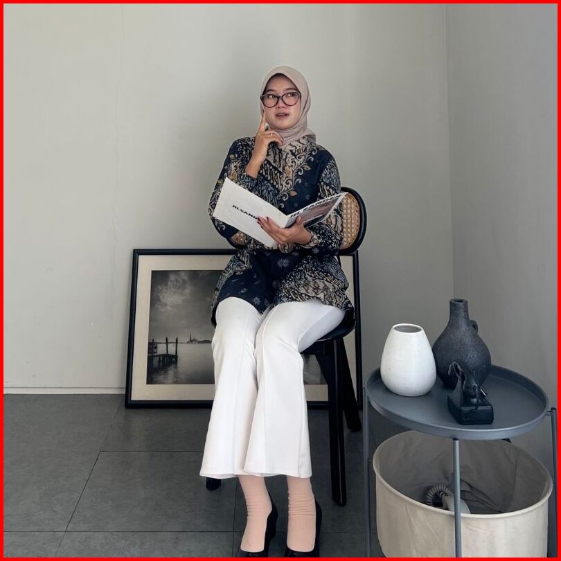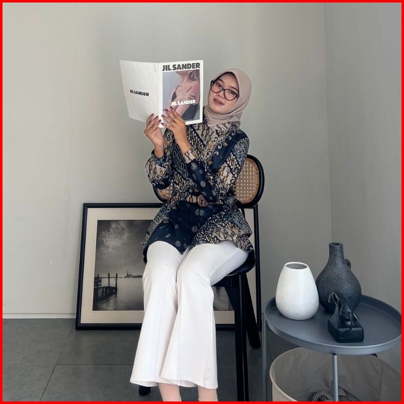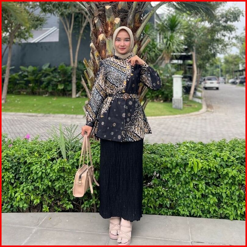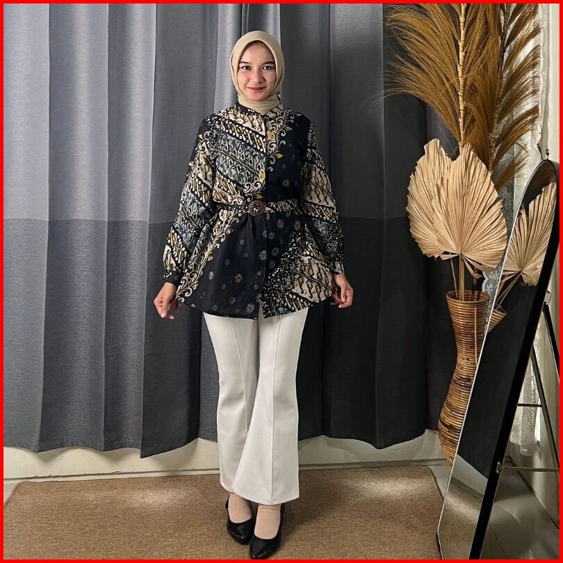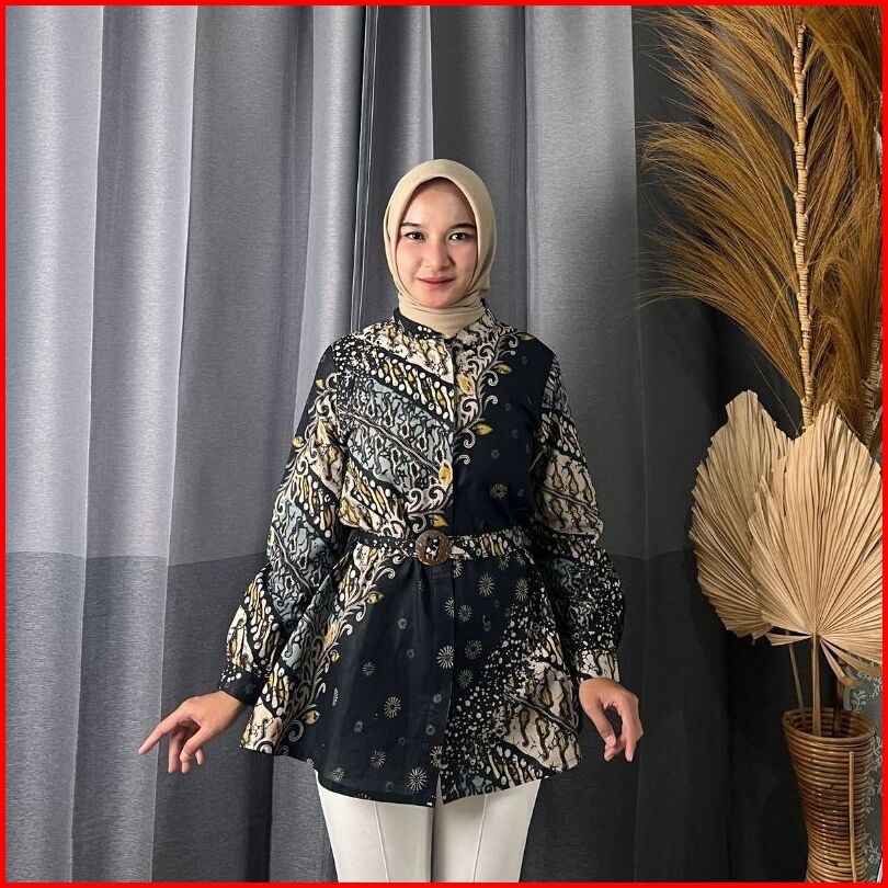 Rasaraya Batik Ayudia Blouse Wanita Katun - Atasan Batik Formal Hitam Belt Klasik Elegan