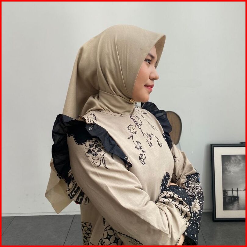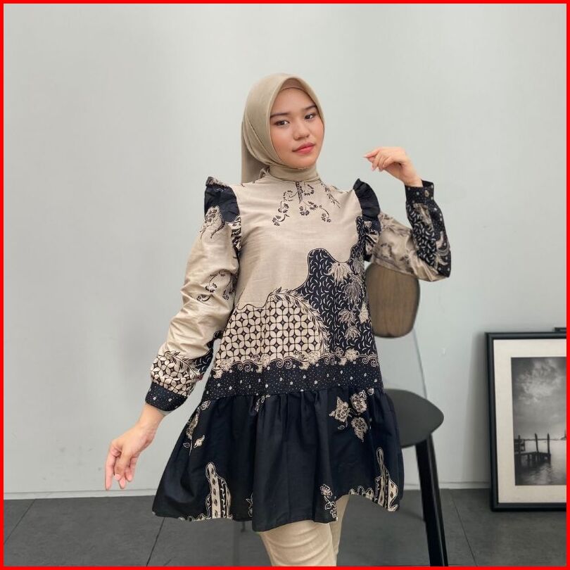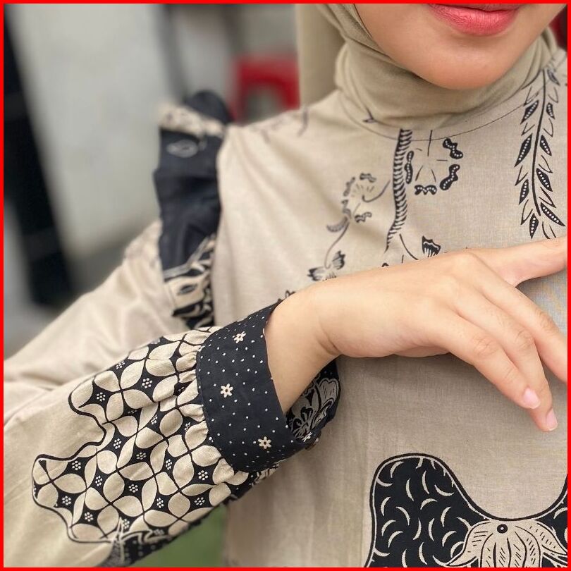 Rasaraya Batik Wening Tunik Wanita Katun - Atasan Batik Kerja Kantor Sogan Motif Klasik Elegan