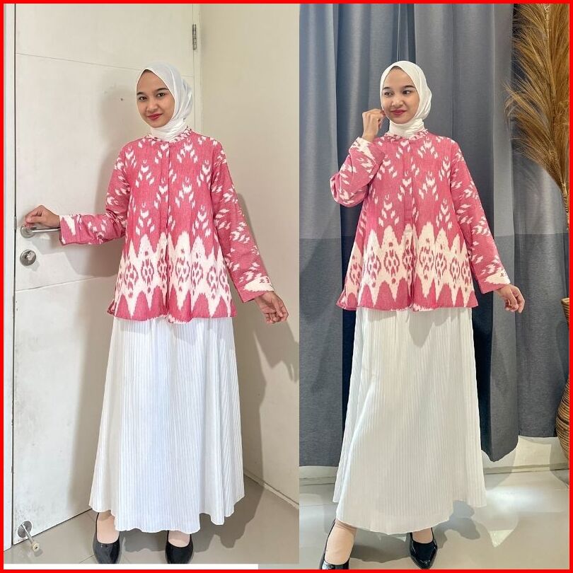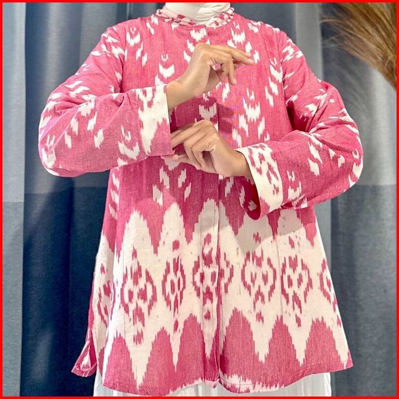 Rasaraya Batik Rosie Kemeja Wanita Tenun Troso Jepara - Atasan Kerja Pink Lengan Panjang