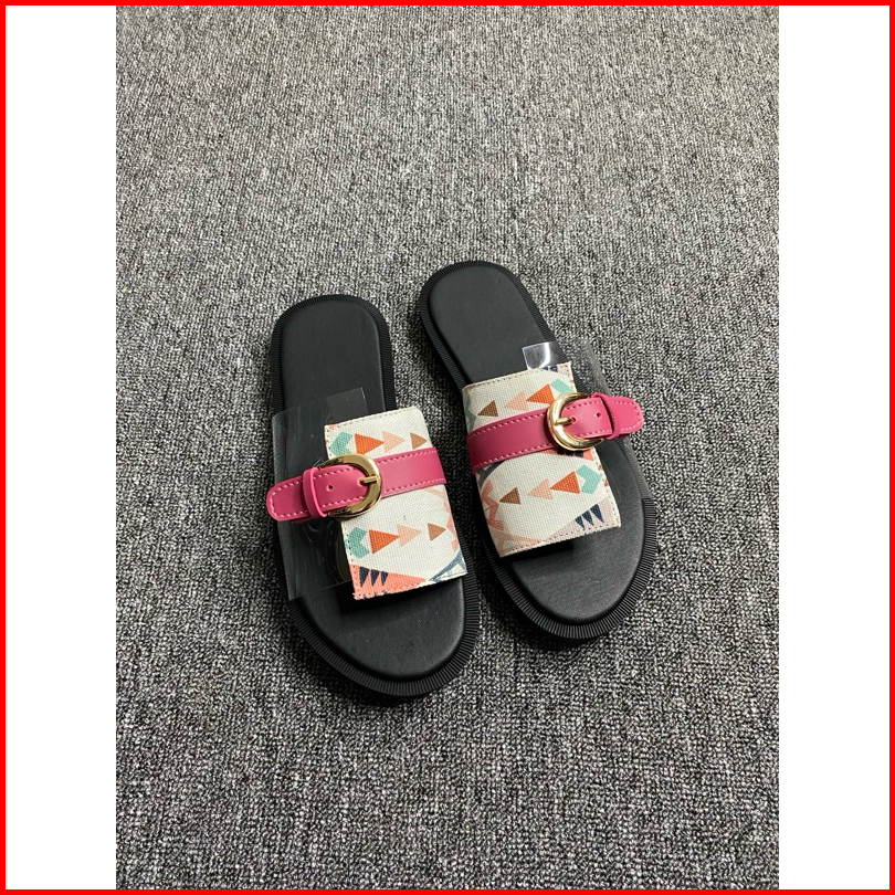 Sellena Sandal Kokop Mika Kanvas Motif Pink