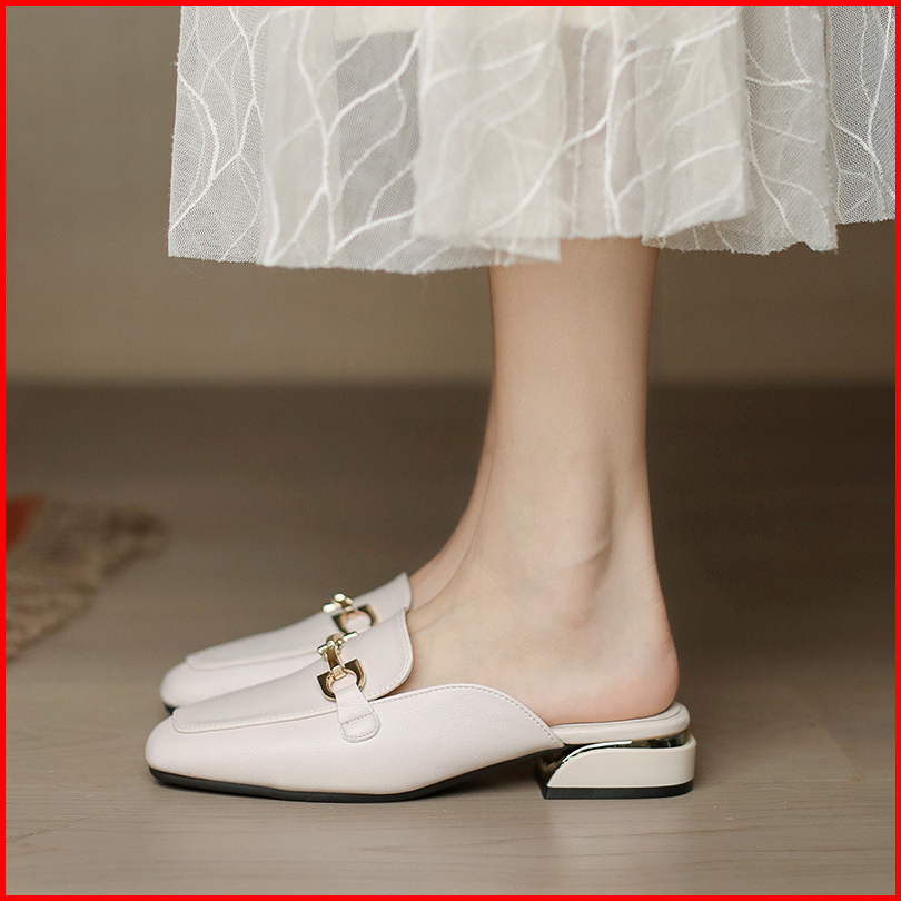 Toko Sea Breeze Sandal Berpotongan Setengah Wanita 2024 Musim Panas Baru Di Luar Memakai Mode Sandal Bertumit Tebal Semi