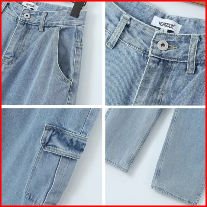 Keygirl Celana Kargo Lurus Pinggang Tinggi Gaya Pacar Asli Jeans Kasual Longgar Wanita Gaya Korea Celana Kulot Loose Pan