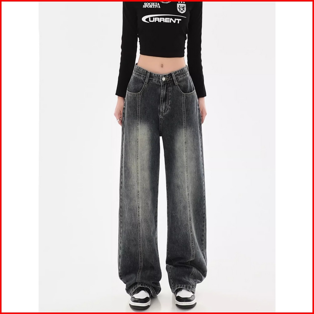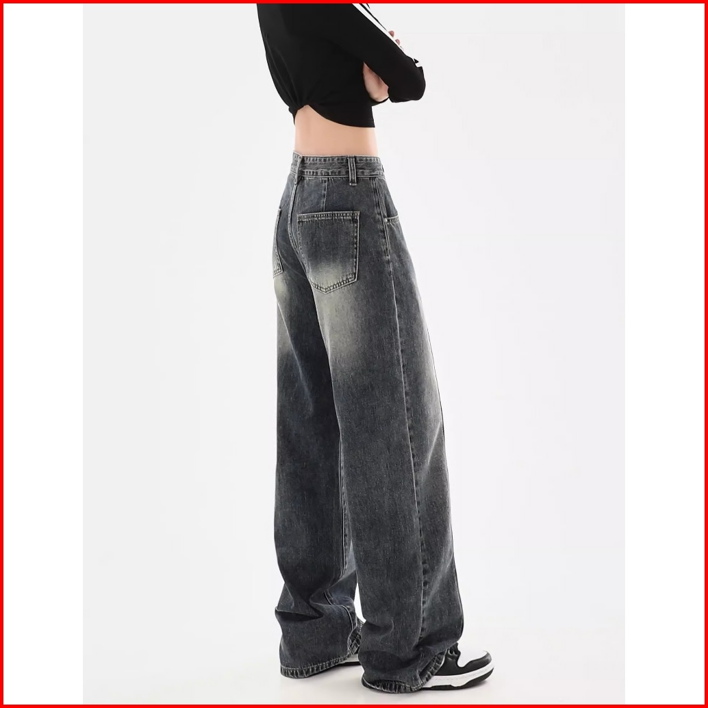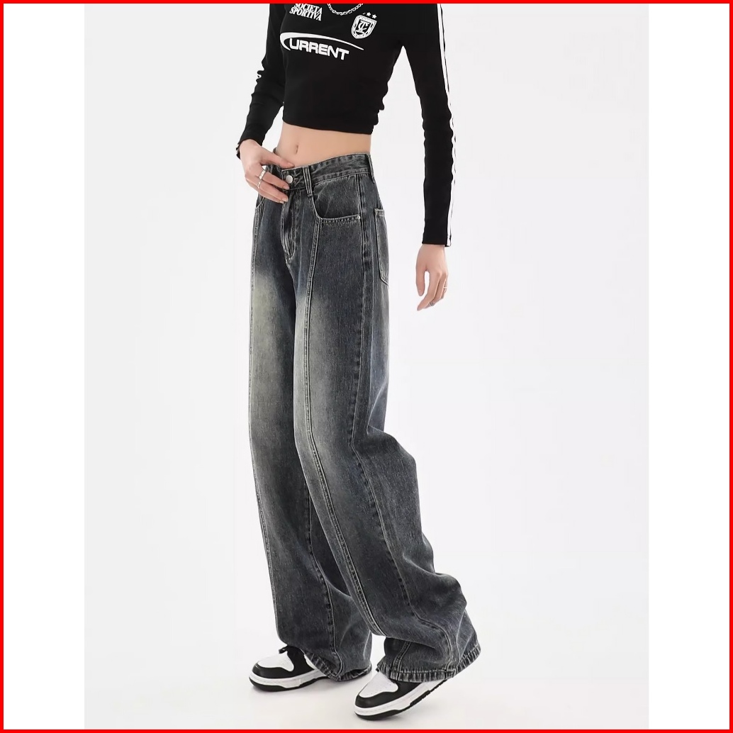 Keygirl Highwaist Korean Loose Jeans Baggy Jeans Abu Wanita Celana Kulot Jeans Loosepants Gombrong Big Size Kekinian
