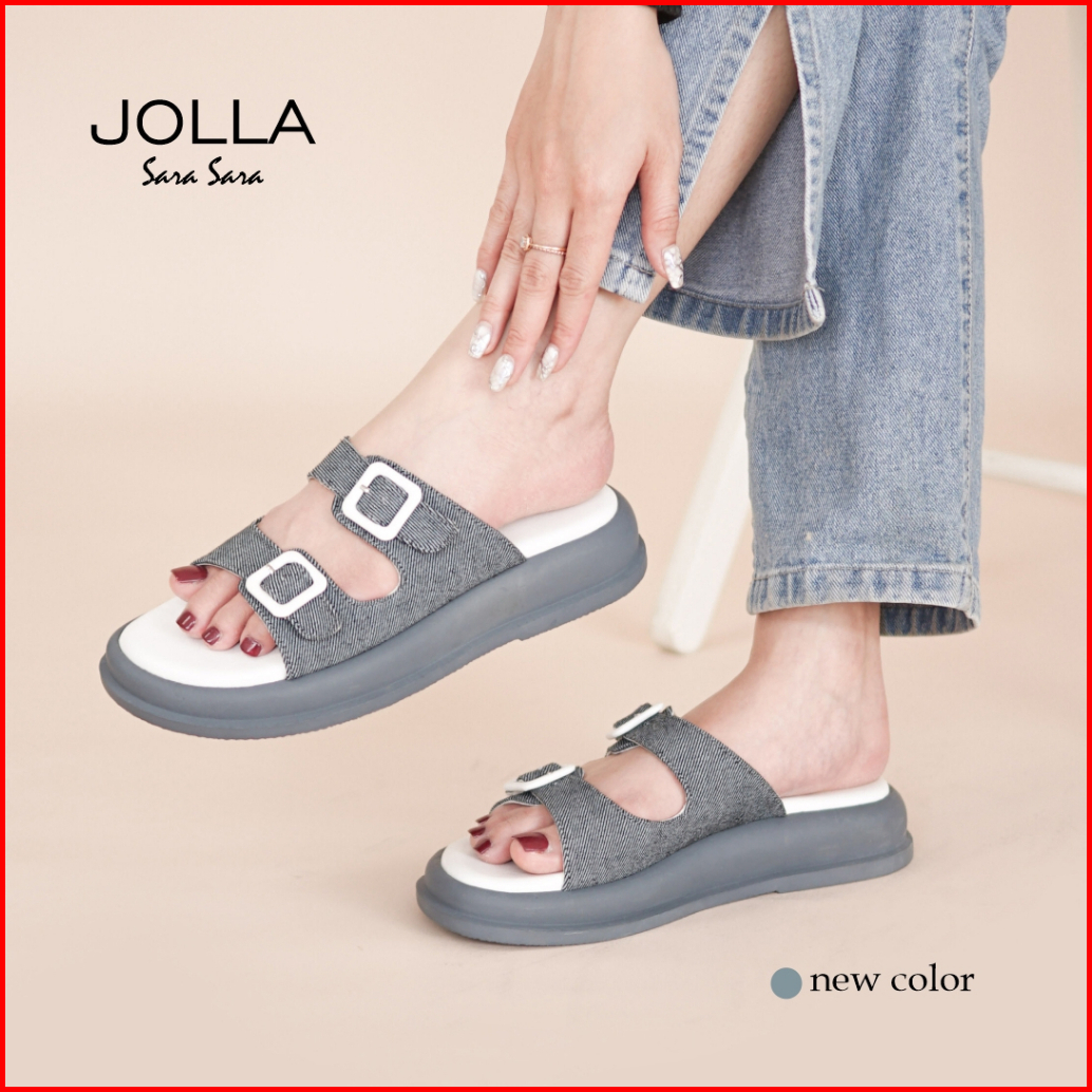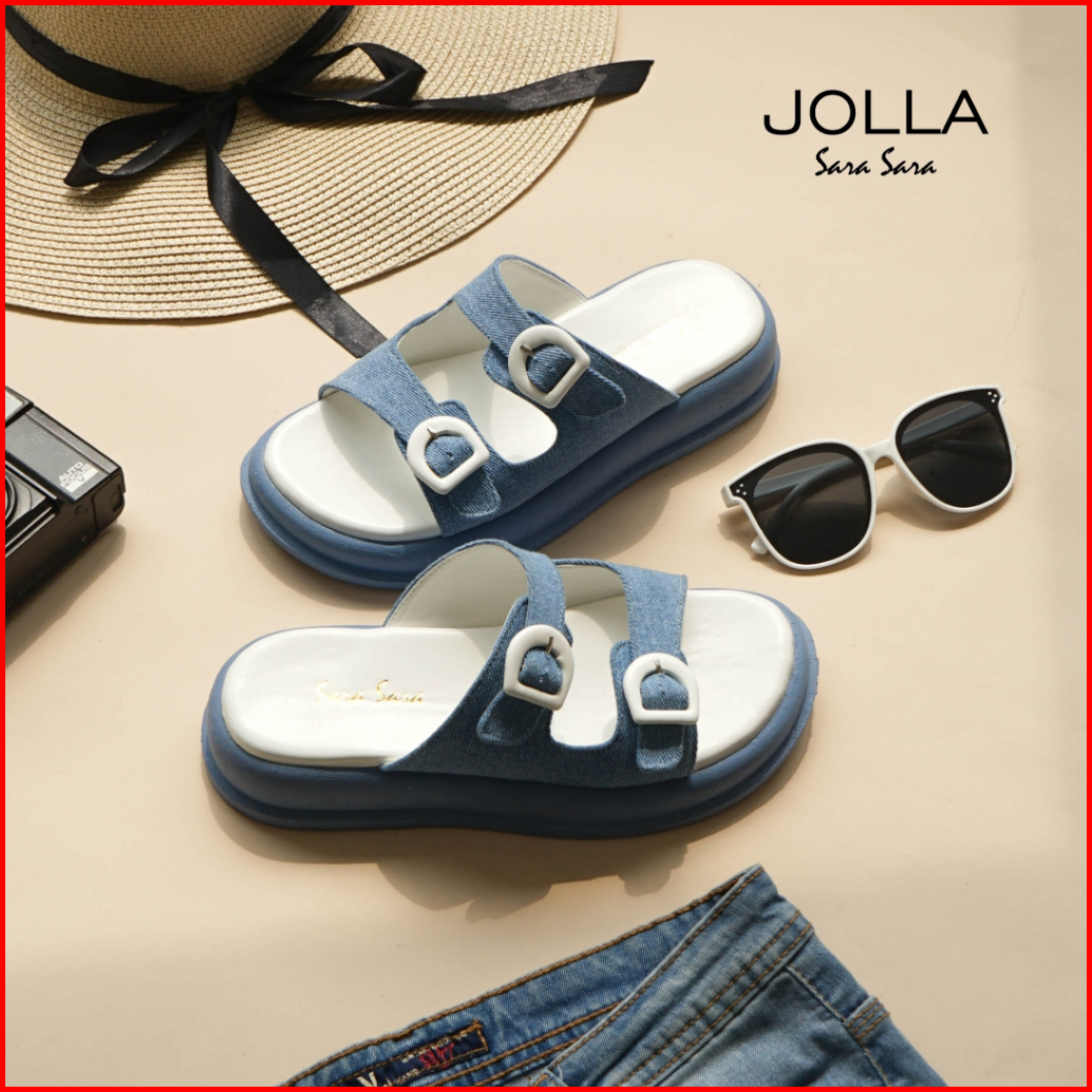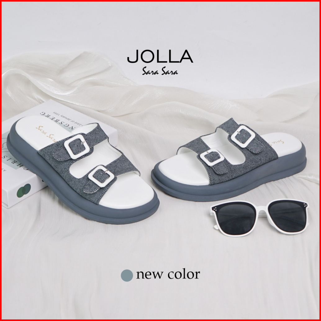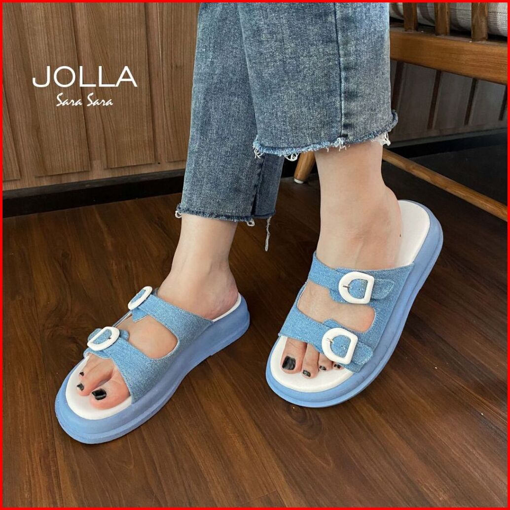 Sara Sara Jolla Sandal Selop Wanita Ban Dua Denim Sendal Slop Cewek Bahan Jin