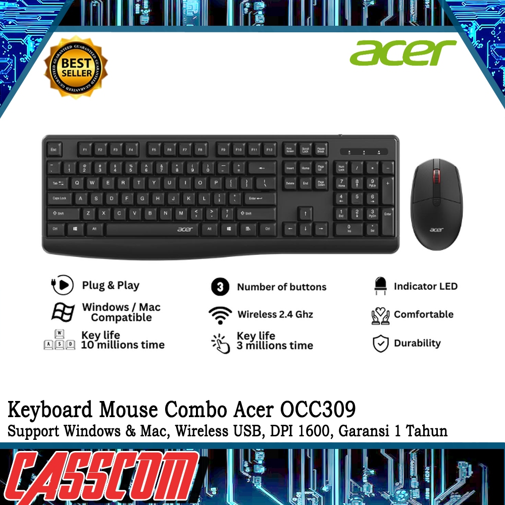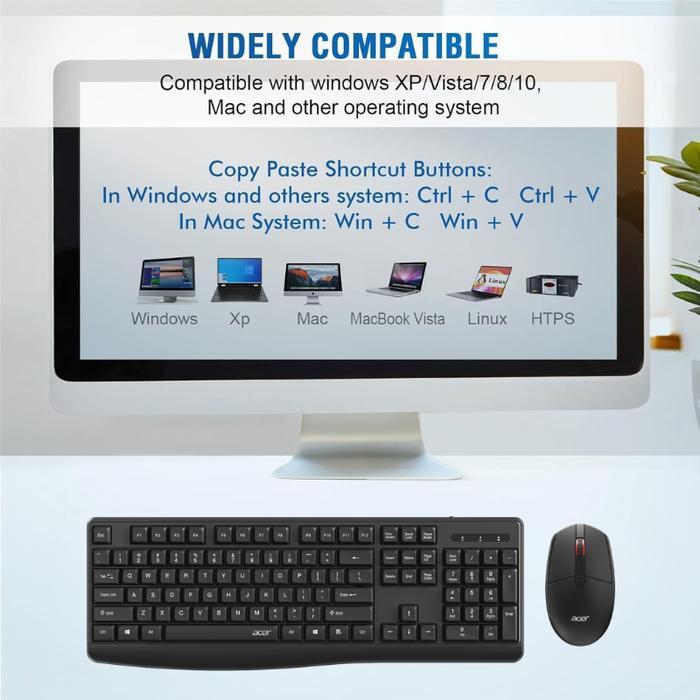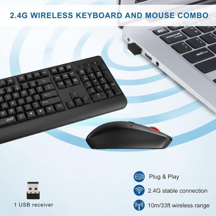 Keyboard Mouse Acer OCC309 Combo Wireless 2.4GHz, Support Windows & Mac, 1600DPI Garansi 1 Tahun