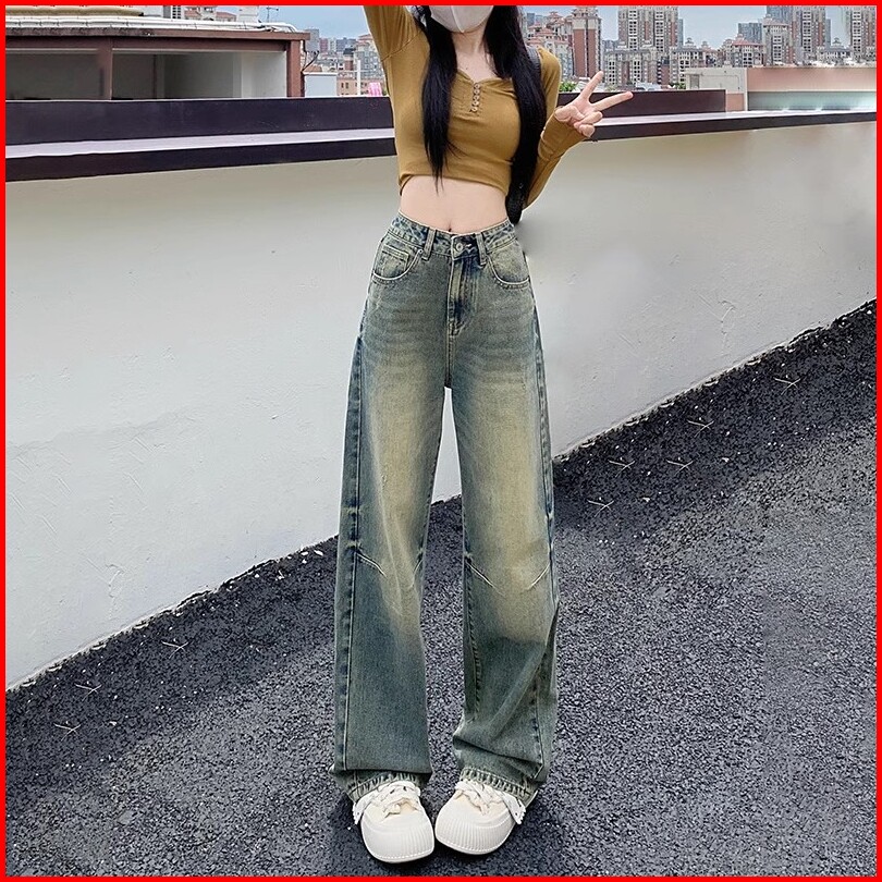 Keygirl Celana Jeans Wanita Highwaist Loose Pants Biru Retro Premium Celana Kulot Jeans Korean New Women S Wide Leg Jean