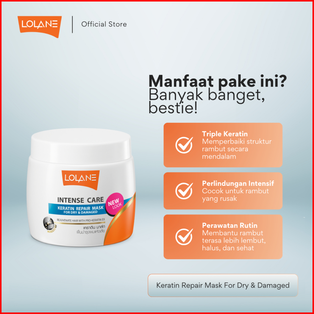 Lolane Intense Care Keratin Repair Hair Mask For Dry Damaged Hair Biru 200 Gr Masker Keratin Untuk Rambut Kering Rusak