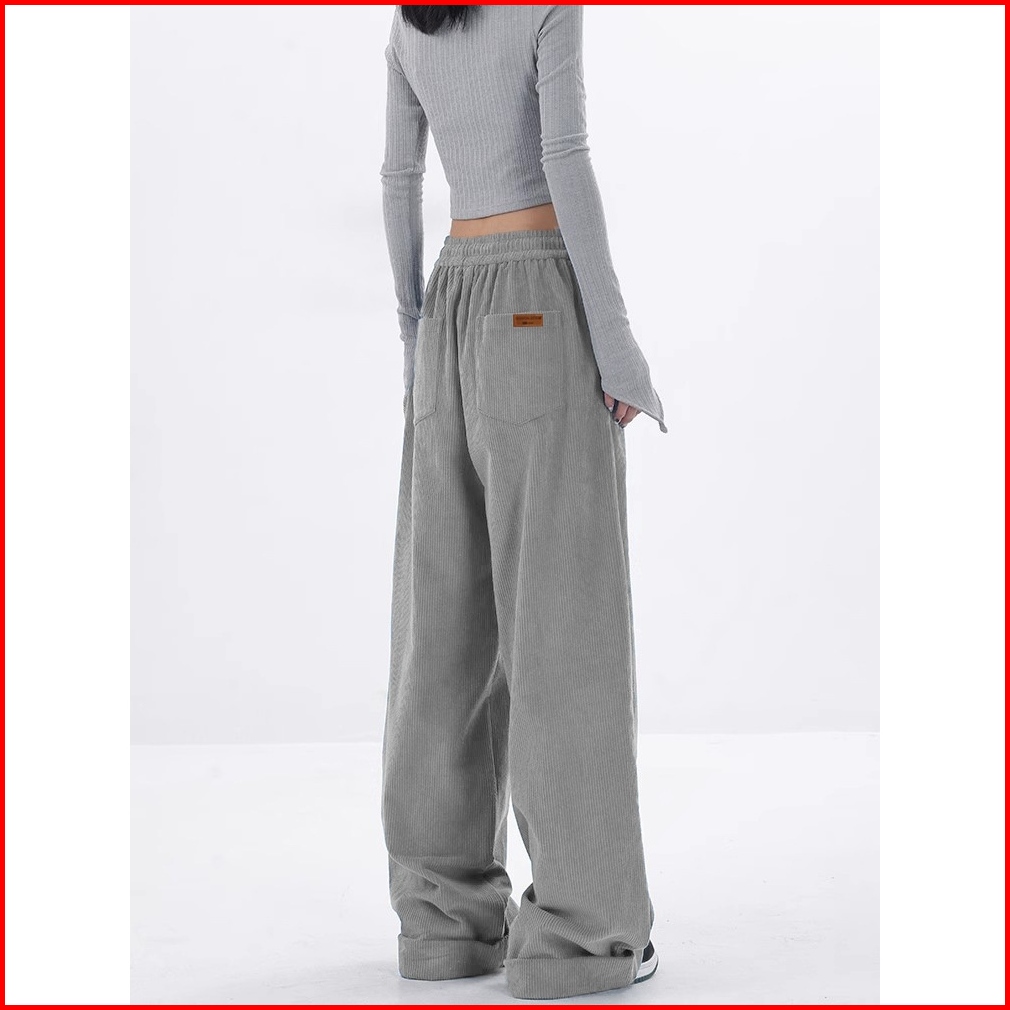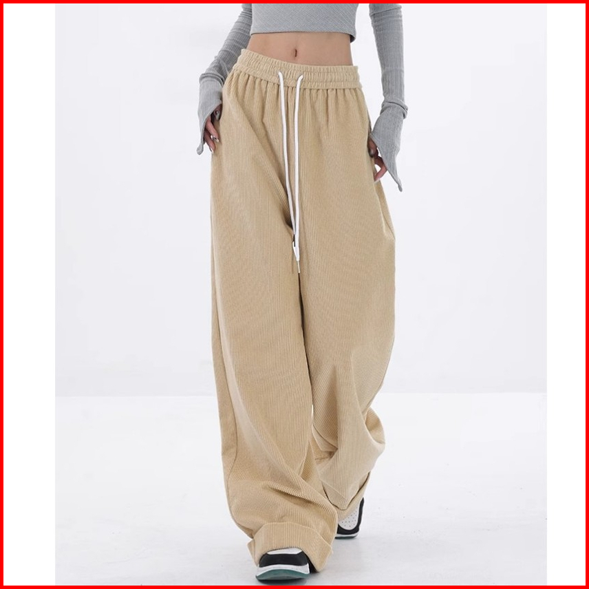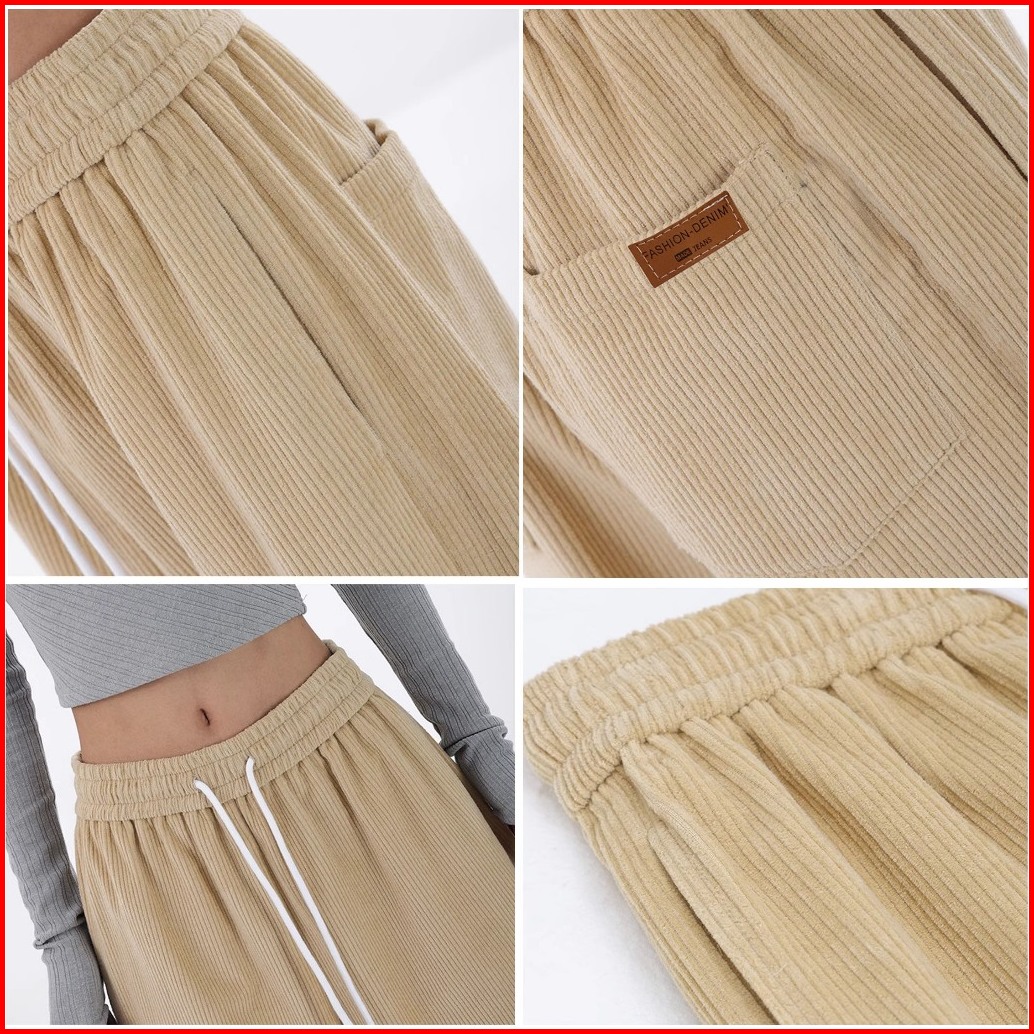 Keygirl Celana Corduroy Wanita Jumbo Kasul Celana Kaki Lebar Pinggang Tinggi Korduroi Korean Kekinian