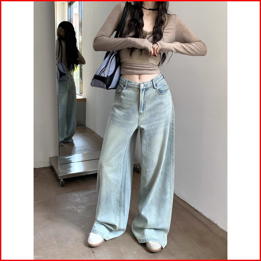 Keygirl Highwaist Baggy New Celana Jeans Panjang Wanita Kasual Jeans Celana Kulot Loose Pants Premium Kekinian Korea
