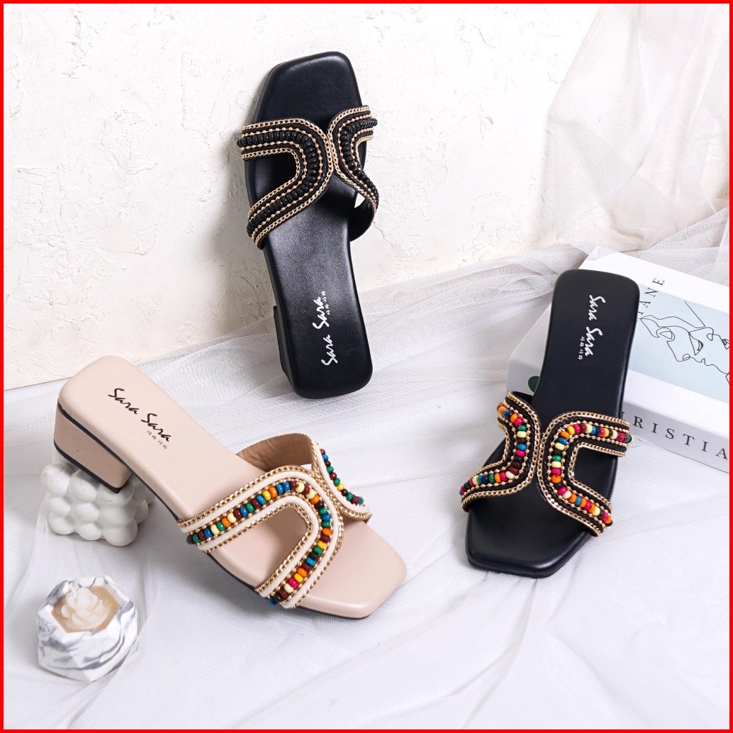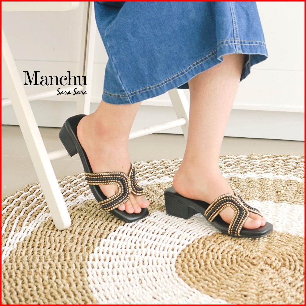 Sara Sara Manchu Sandal Selop Kasual Wanita Hak Sendal Slop Cewek Heels Etnik