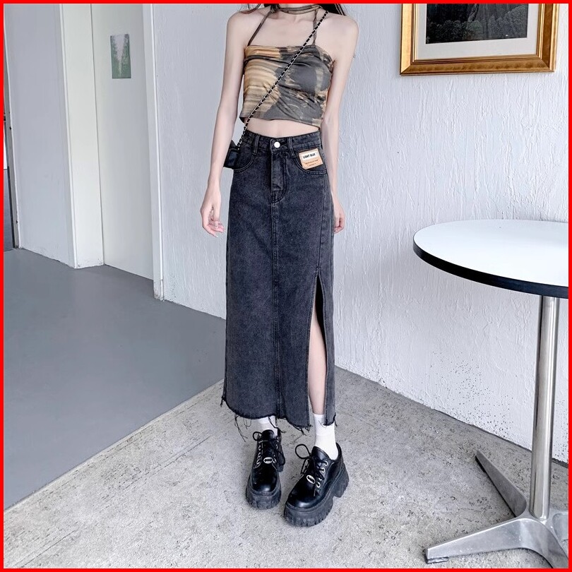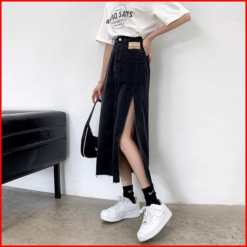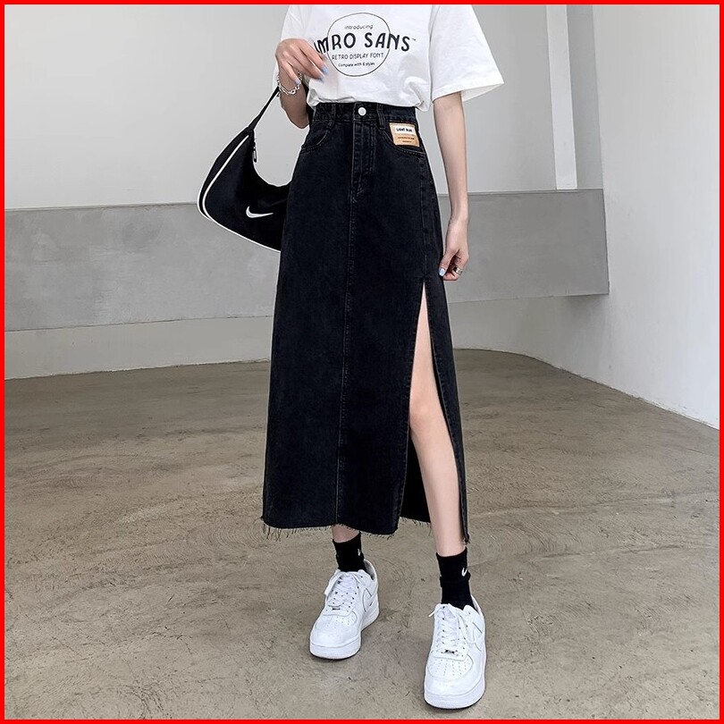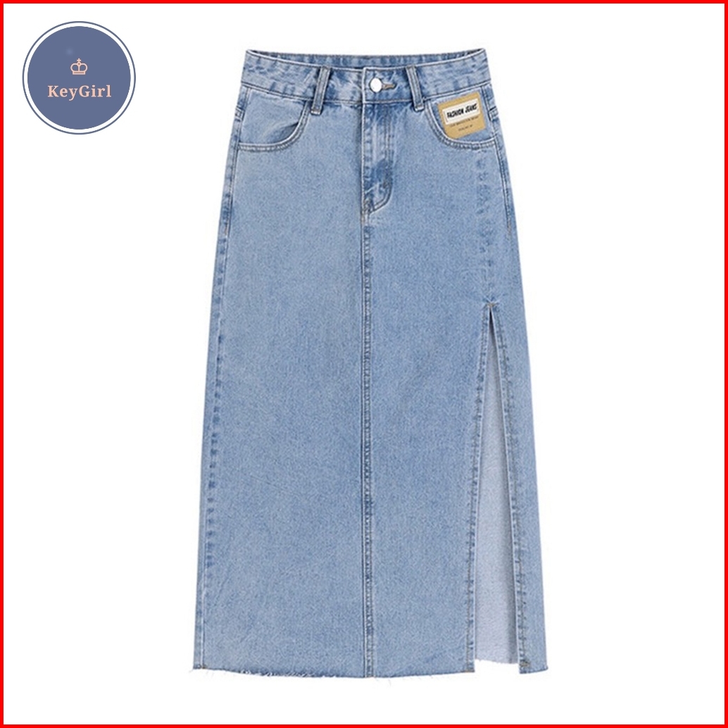 Keygirl Jumbo Size 5xl Rok Korean Style Panjang High Waist Slit A-line Skirt Midi Rok Jeans Panjang Rok 7 8 Wanita Premi