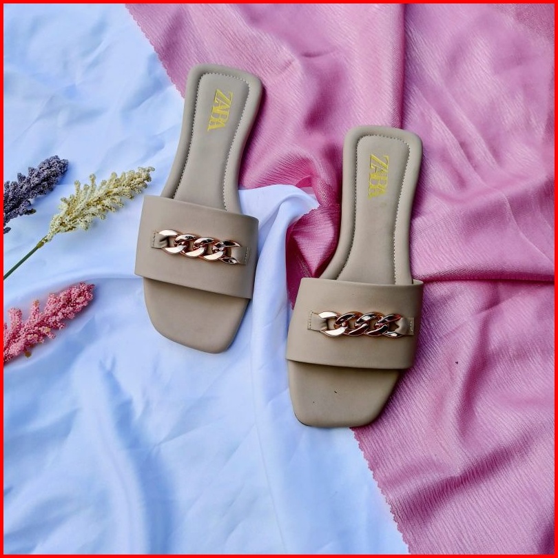 Sandal Wanita Teplek Sandal Flat Ring Rantai Kd 001