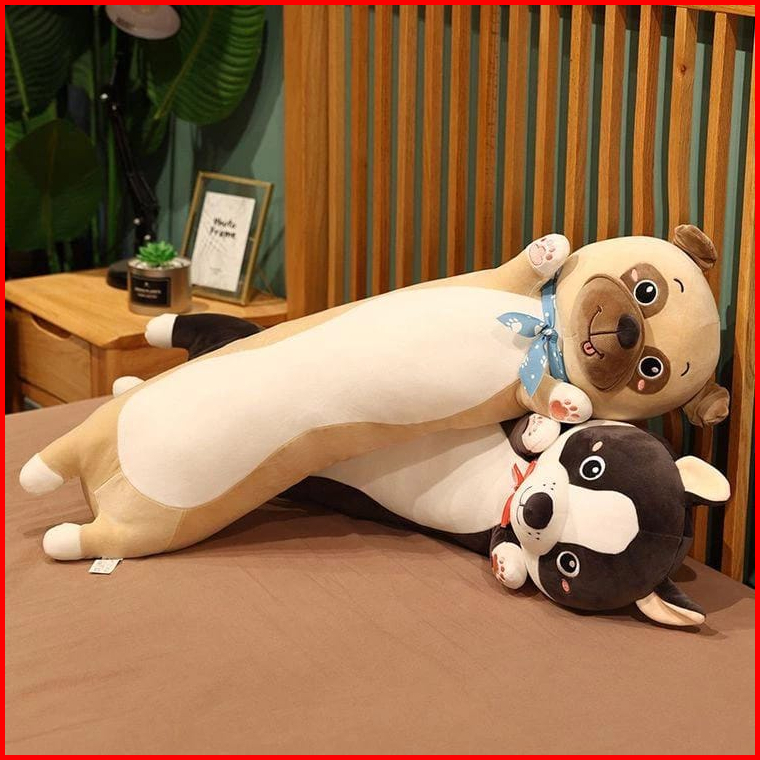 Boneka Bantal Guling Dog Lucu Warna Tan Hitam Abu
