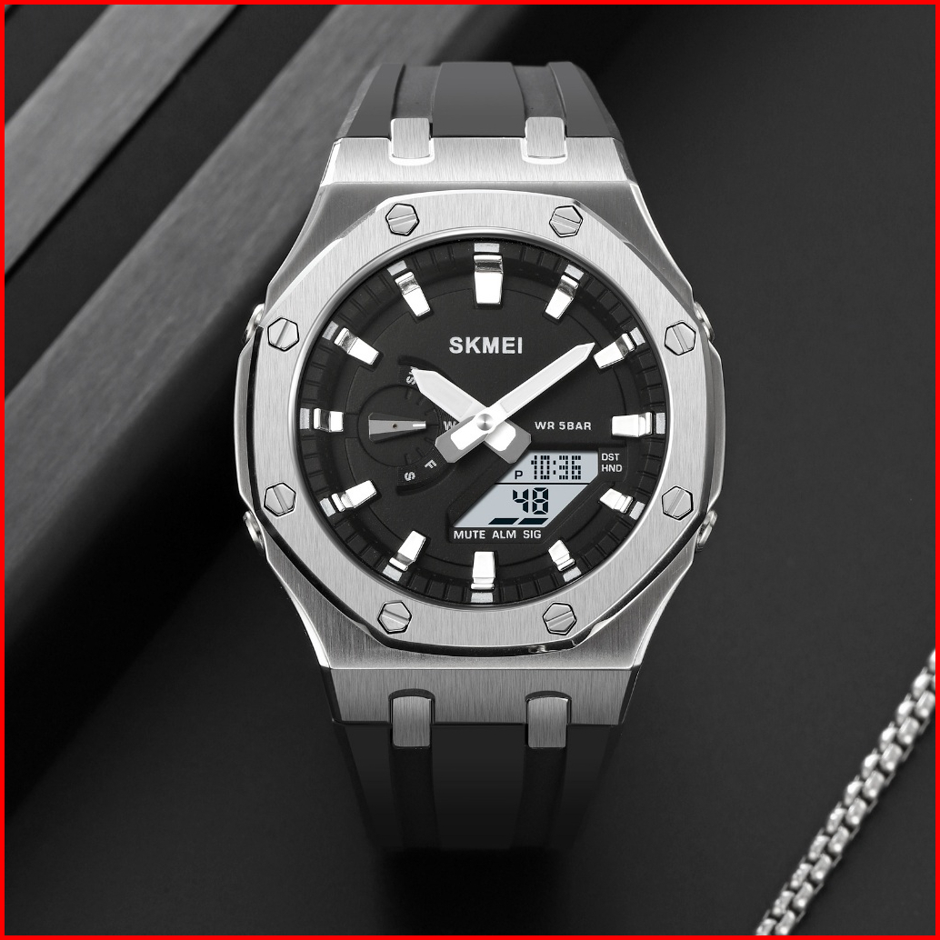 Skmei 2243 Original Jam Tangan Dual Time Pria Silicon Tahan Air