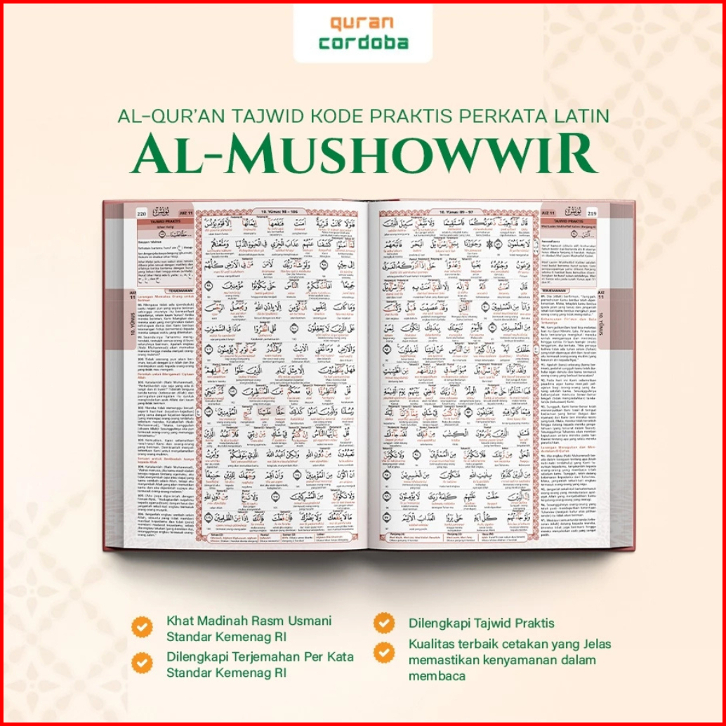 Al Quran Cordoba - Quran Per Kata Al Mushowwir Terjemah A4 Besar Original Quran Bonus Tasbih Digital