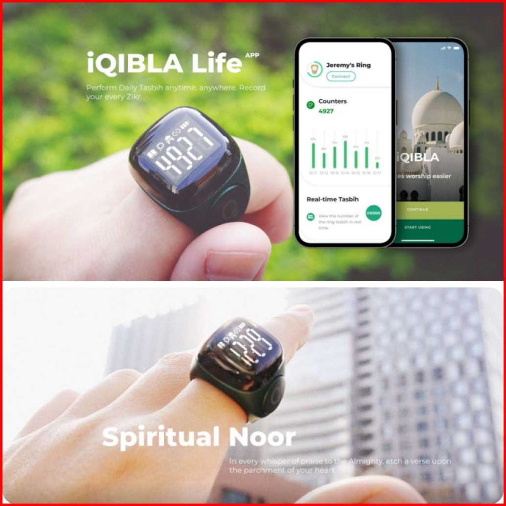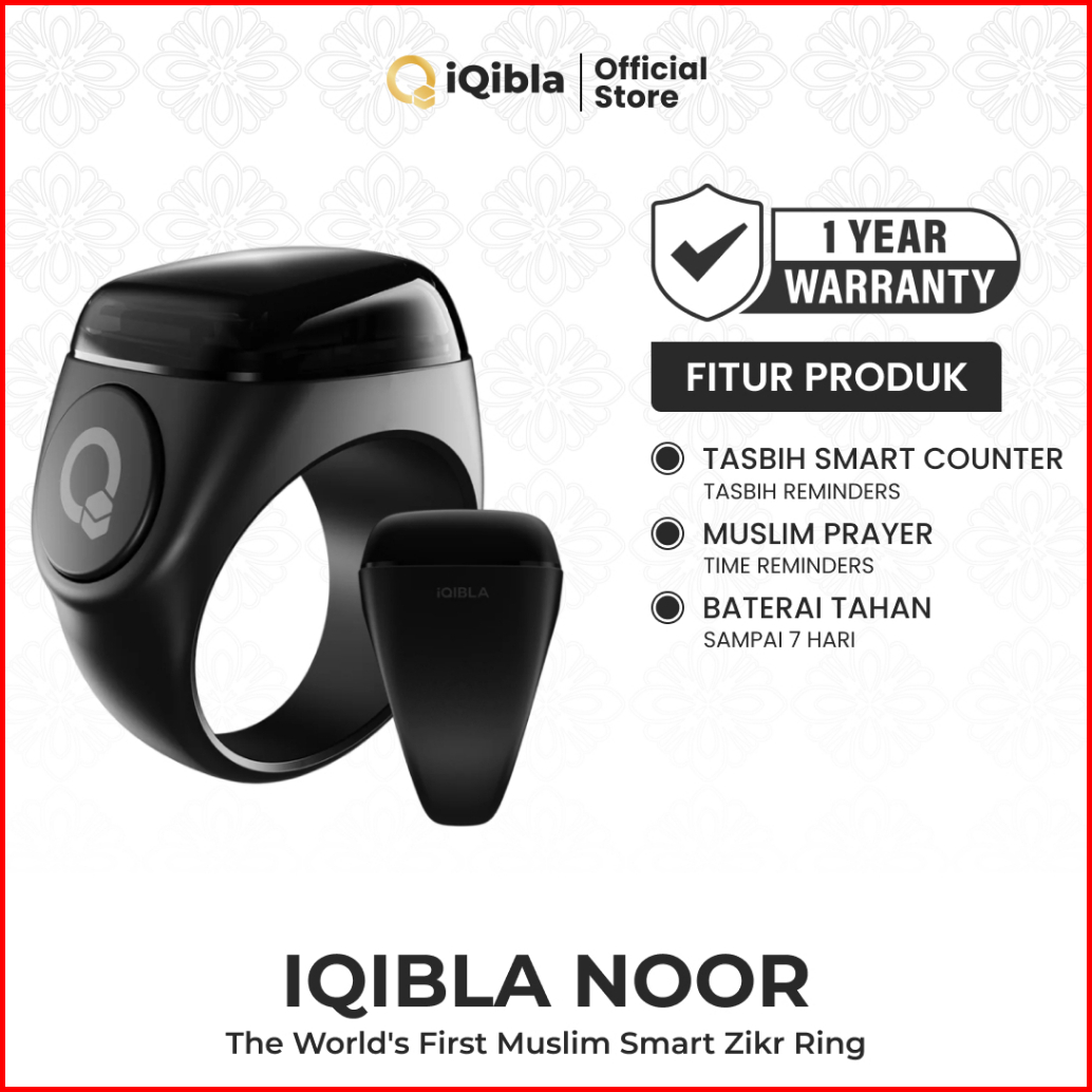 Iqibla Zikr Ring Noor N01 Smart Tasbih Digital Hitung Zikir Harian Muslim Modern Baterai Tahan Lama Cincin Zikir