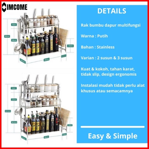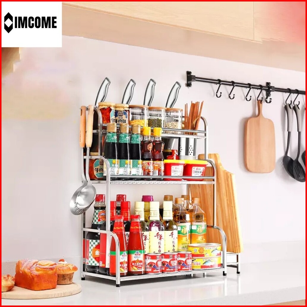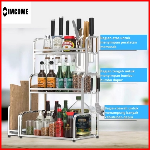 Imcome Rak Bumbu Dapur 3 Susun Tingkat Serbaguna Tempat Penyimpanan Perlengkapan Dan Peralatan Masak Pisau Talenan Dapur