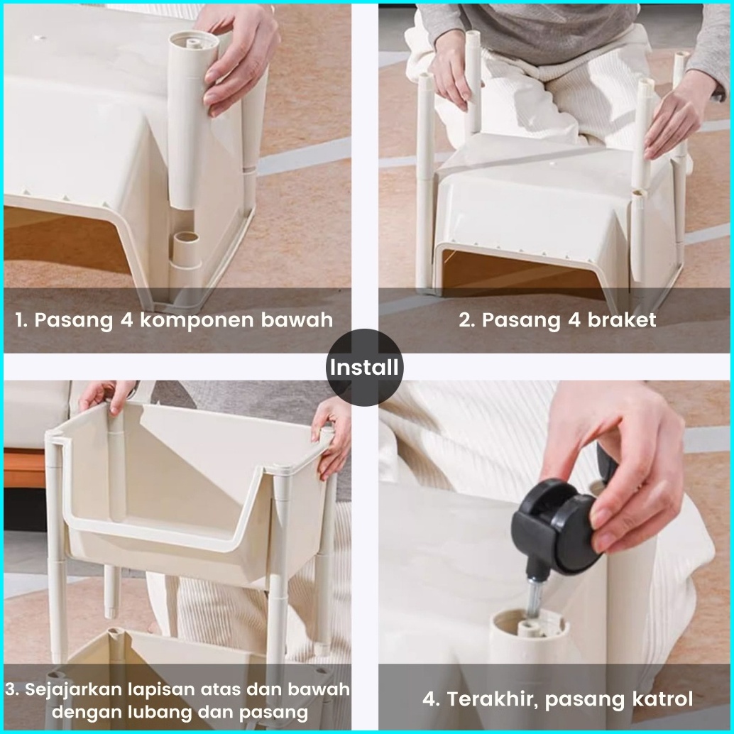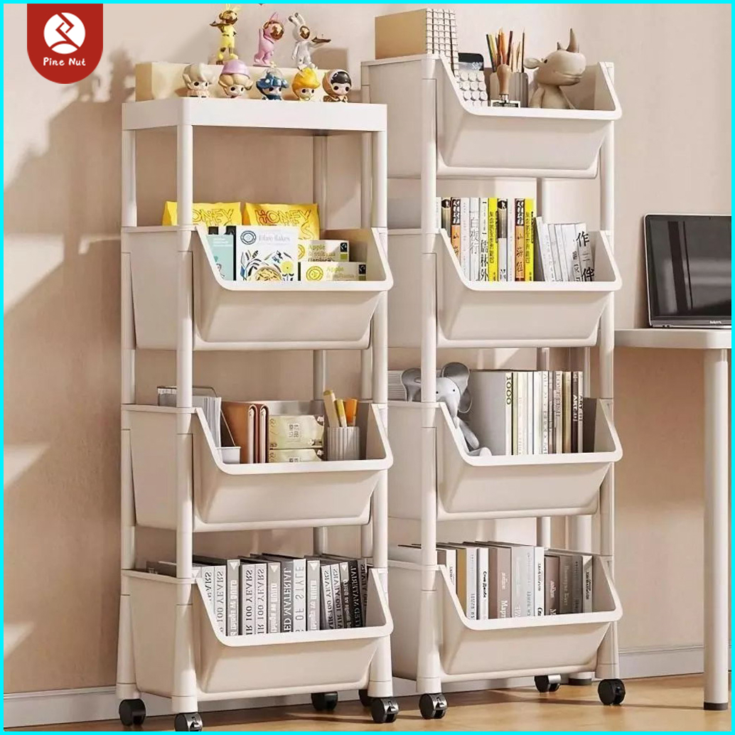 Rak Buku Susun Serbaguna Tempat Rak Buku Anak Lemari Buku Plastik Rak Portable Roda Rak Mainan