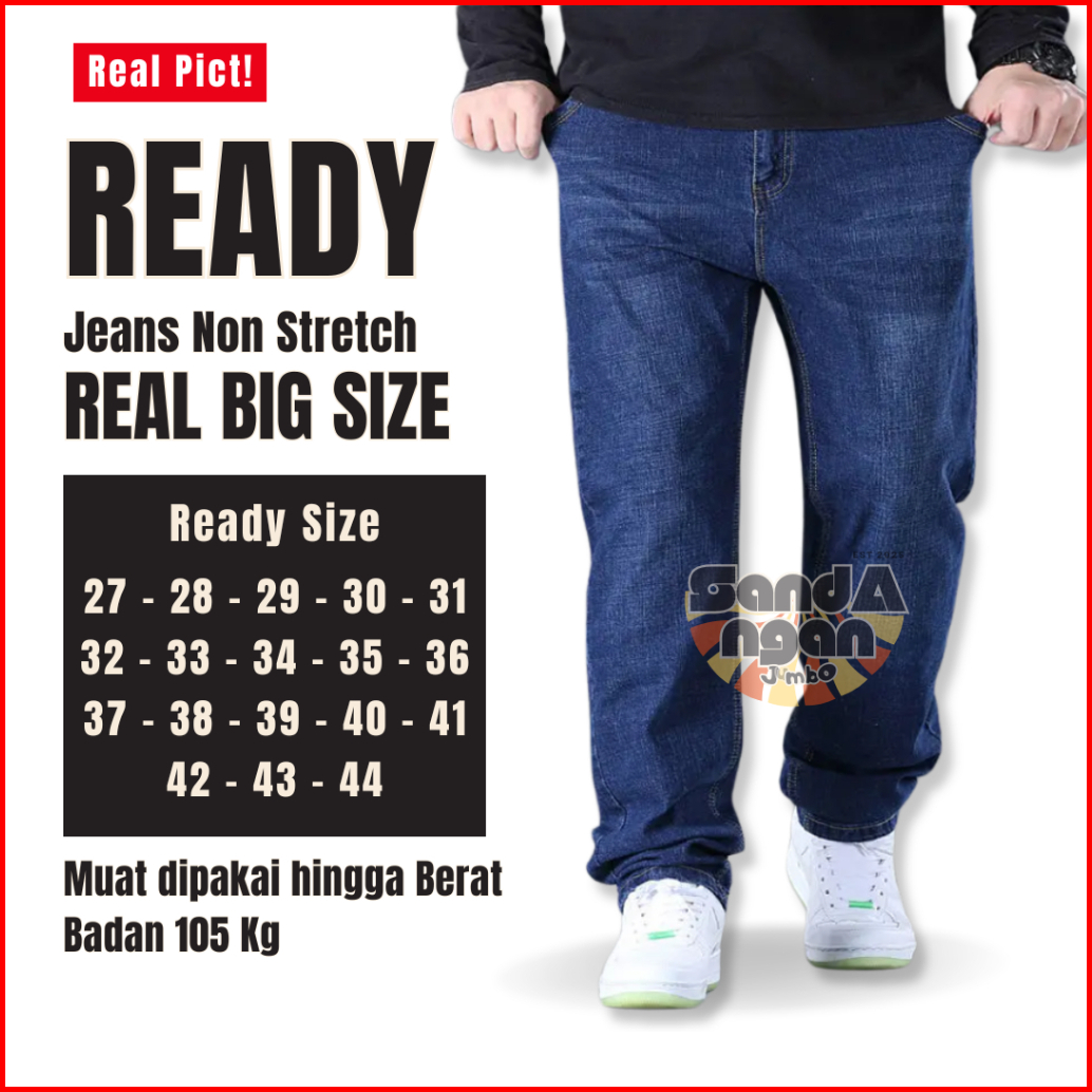 Celana Jeans Pria Standart Reguler Denim Biru Dongker Jumbo Size 28-46 Celana Panjang Pria