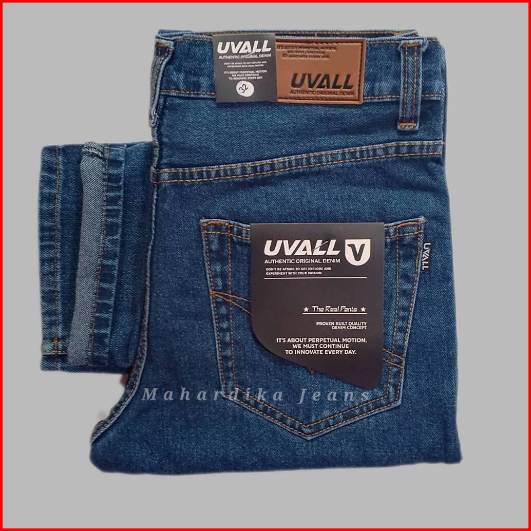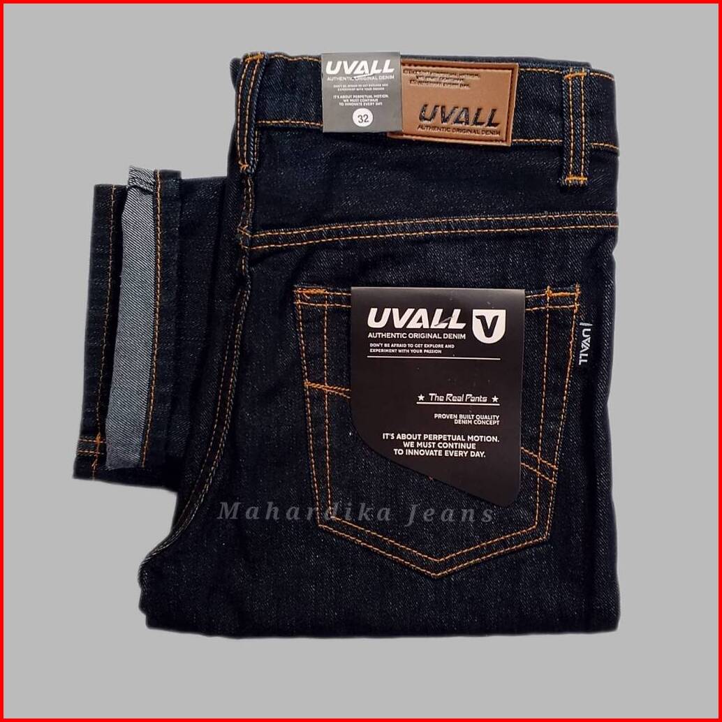 Celana Jeans Denim Pria Model Standar Reguler Original Uvall Cowok - Navy Dark Blue 28-38