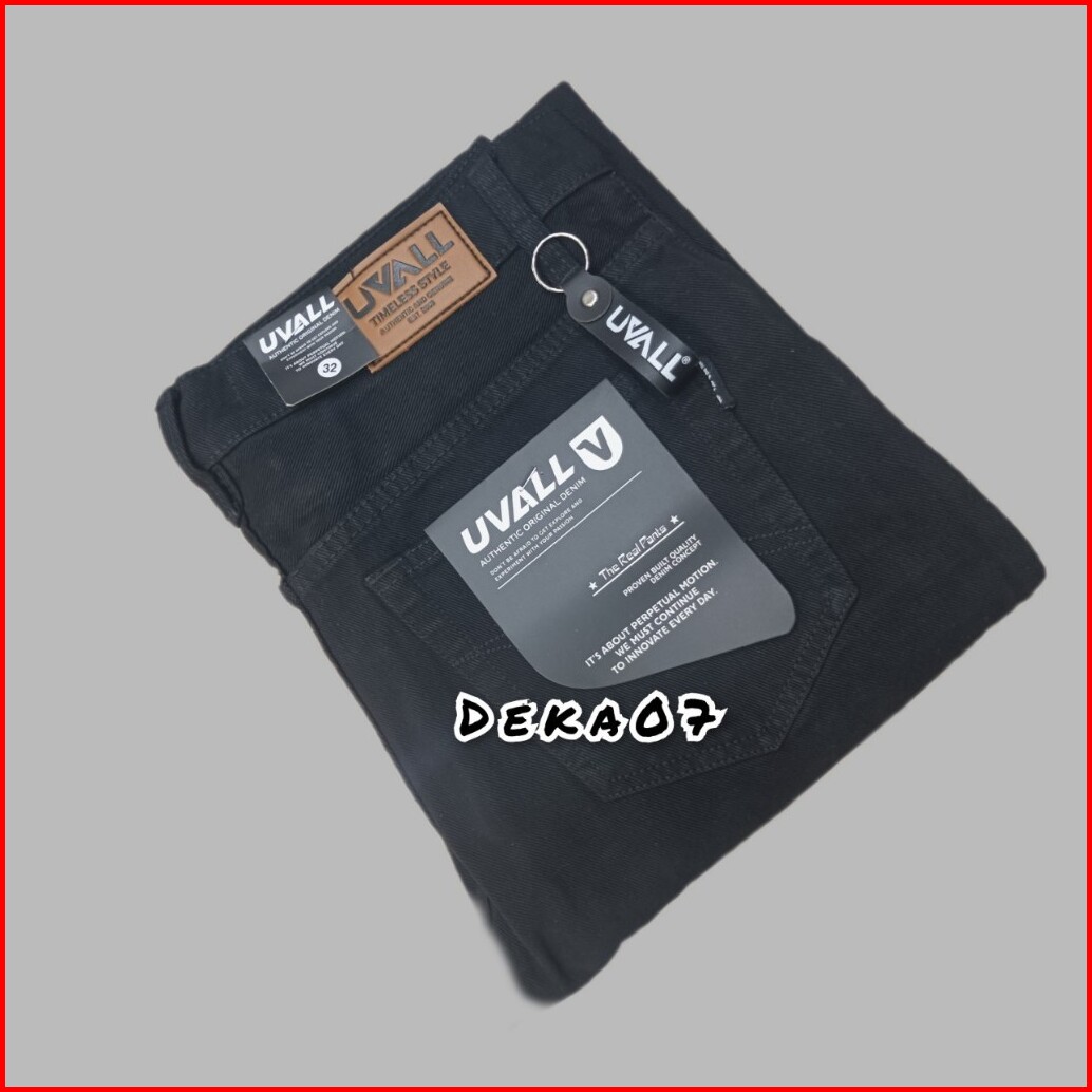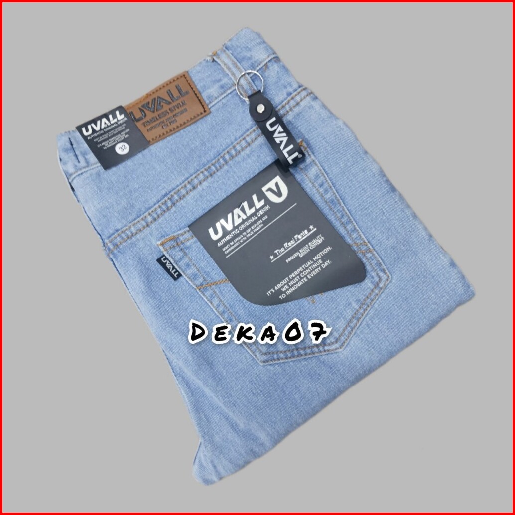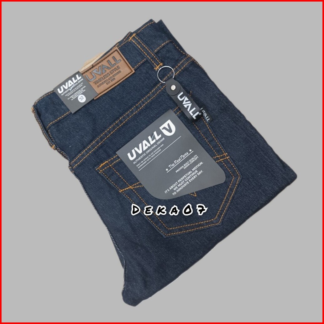 Celana Jeans Model Standar Reguler Original Uvall Cowok Besar Jumbo Biowash Biru Tua 28-46