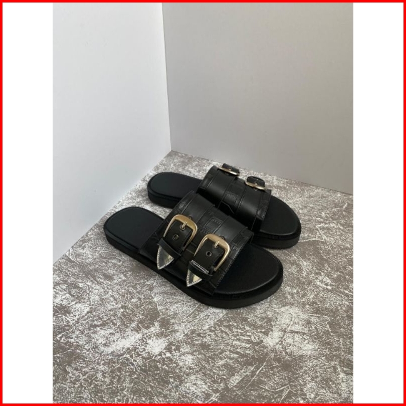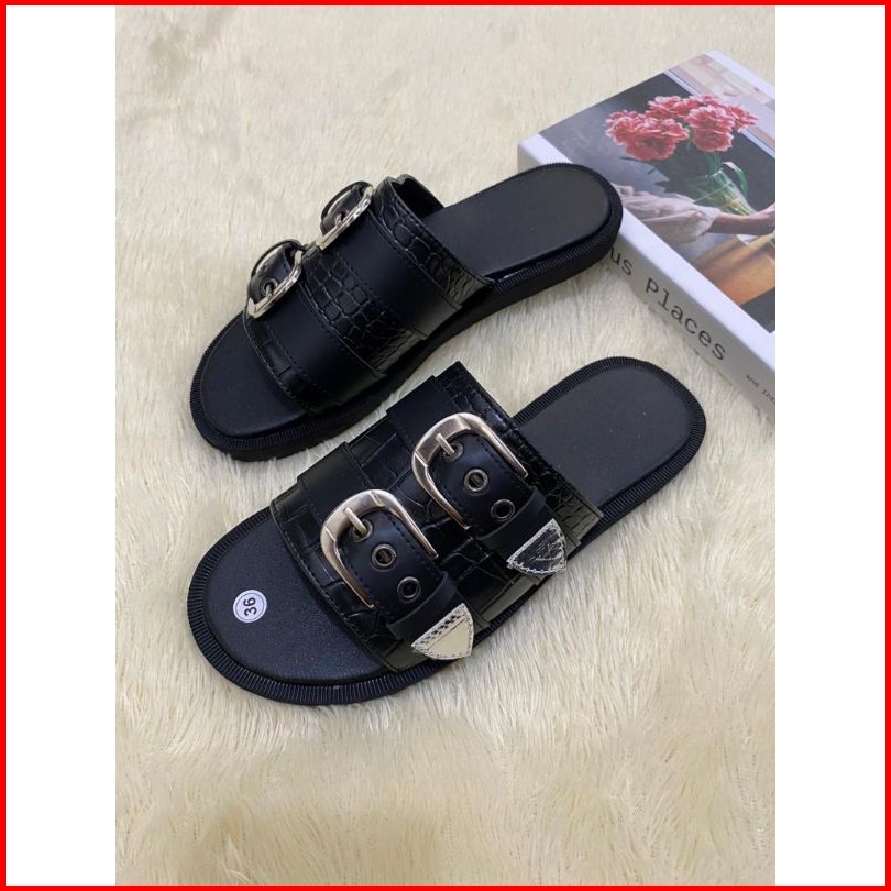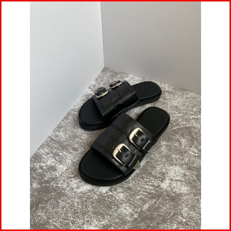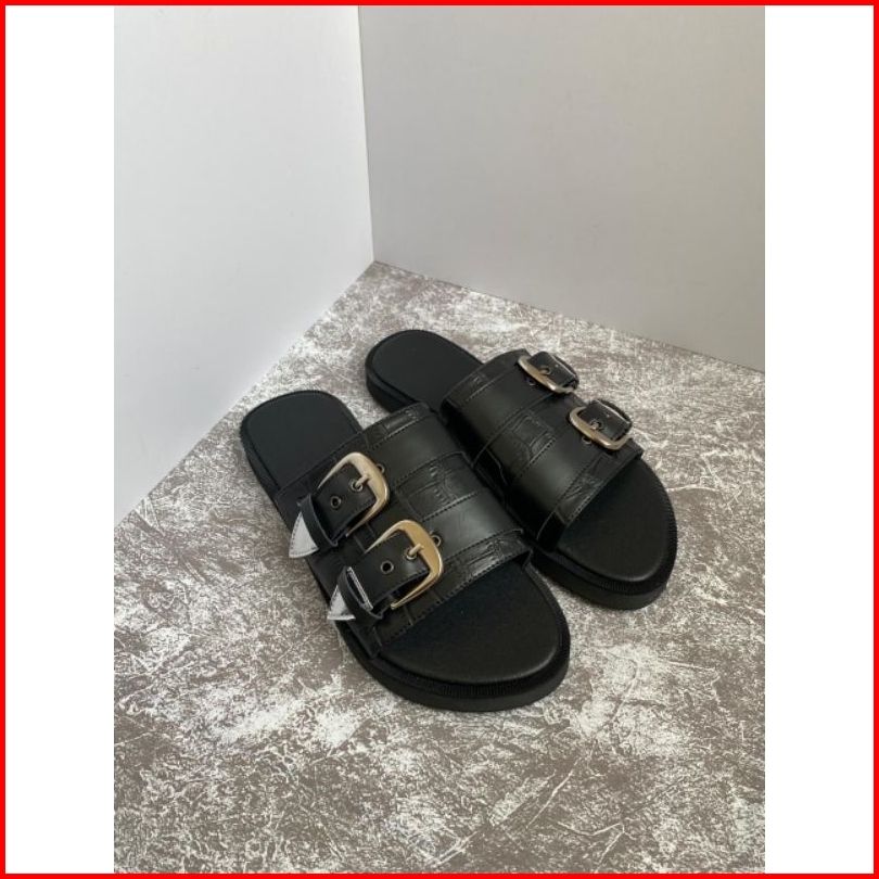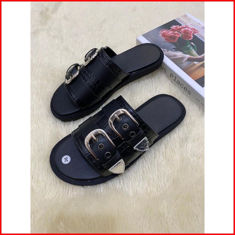 Sandal Adella Sendal Selop Wanita Motif Croco Hitam Terbaru