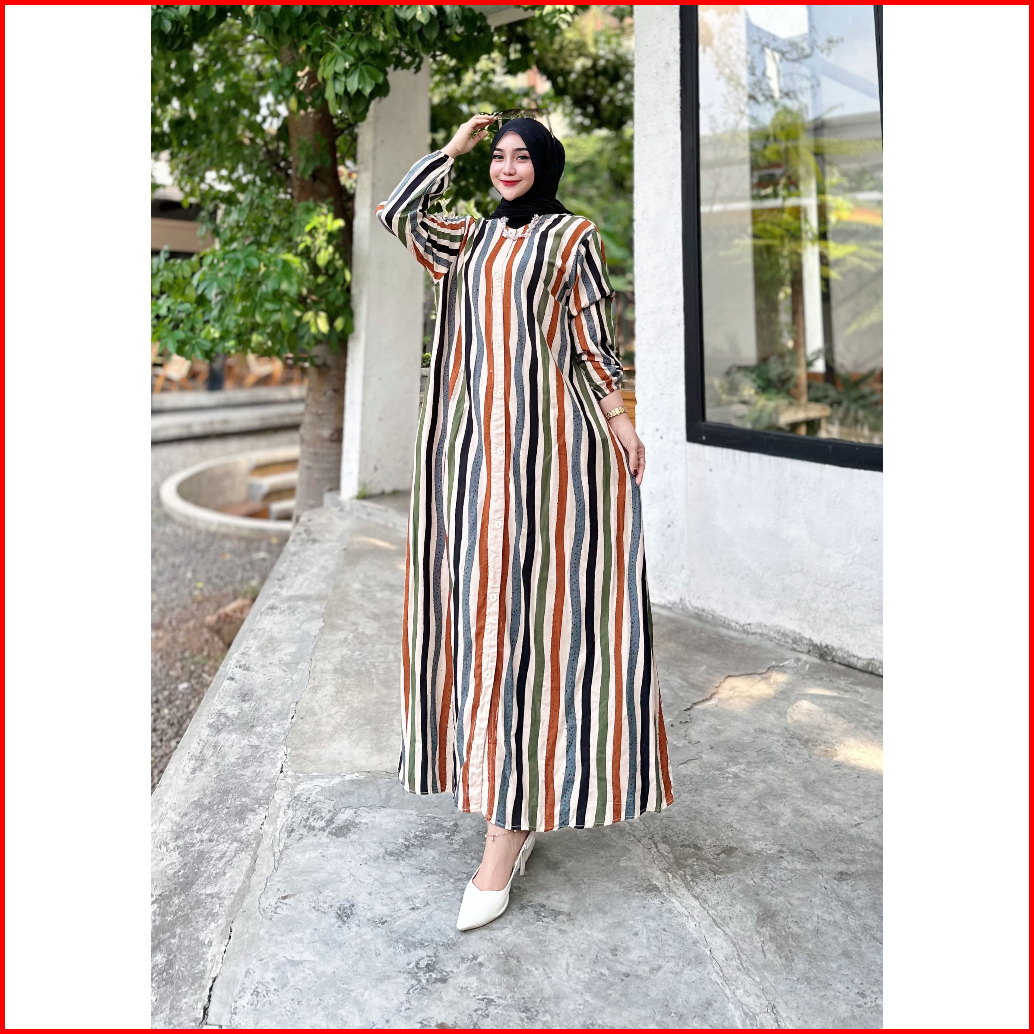 Terbaru Gamis Rayon Wanita Premium Grade A Motif Salur Kekinian Dress Muslim Wanita Dress Wanita Kekinian